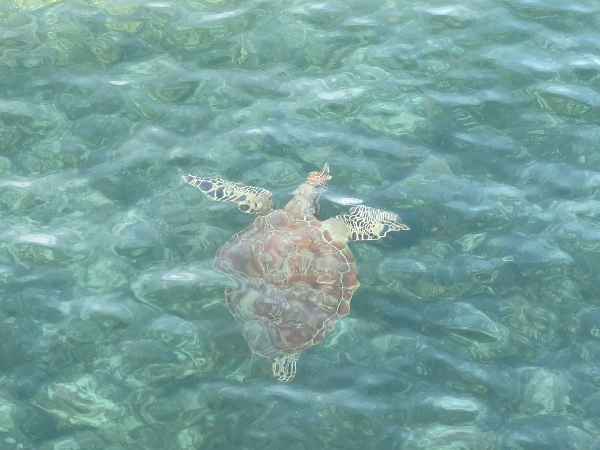 16時頃から満ち潮で海が深くなってきます。この頃に桟橋付近や、桟橋と反対側の島でウミガメが現れやすかったです。
