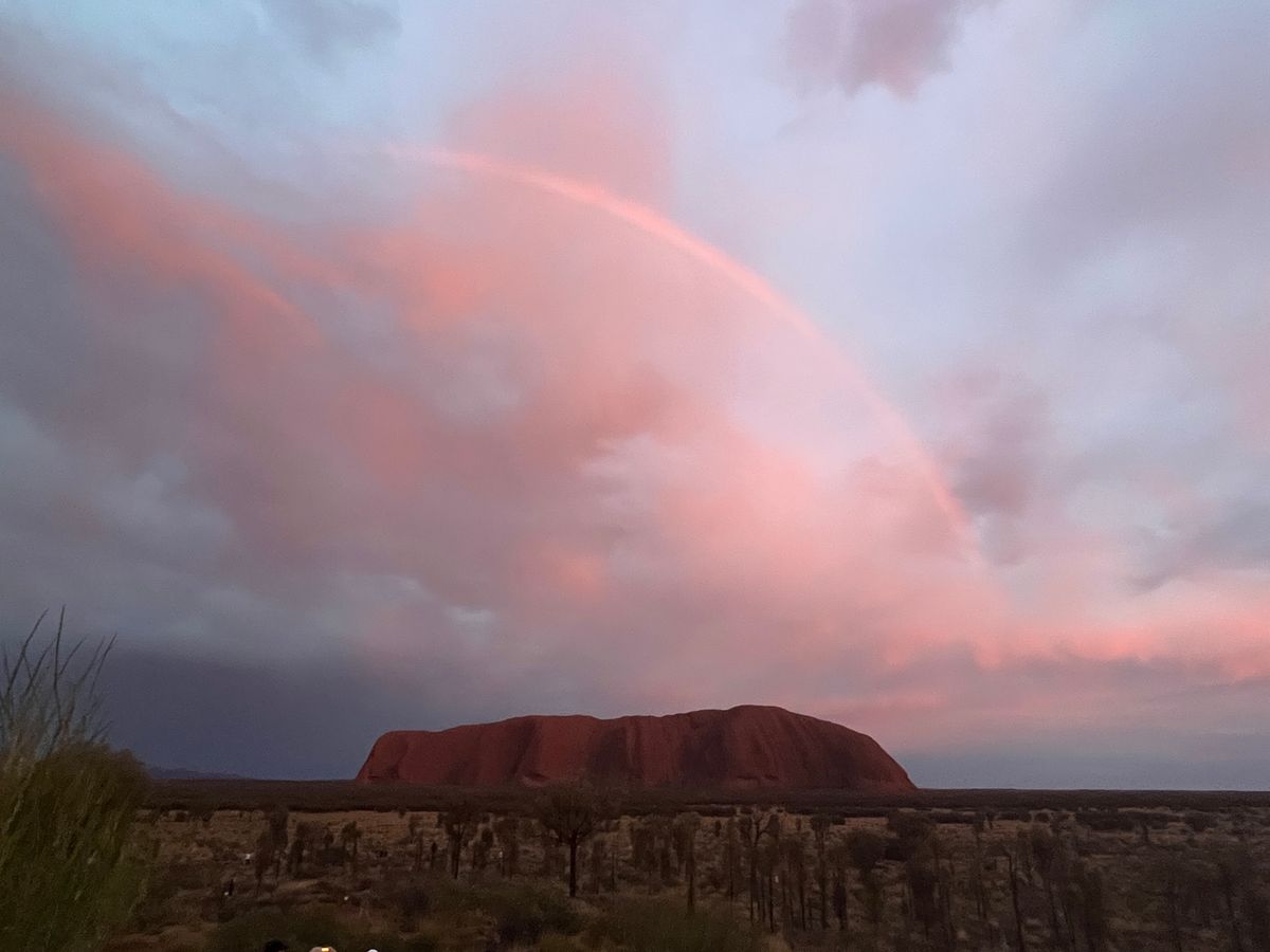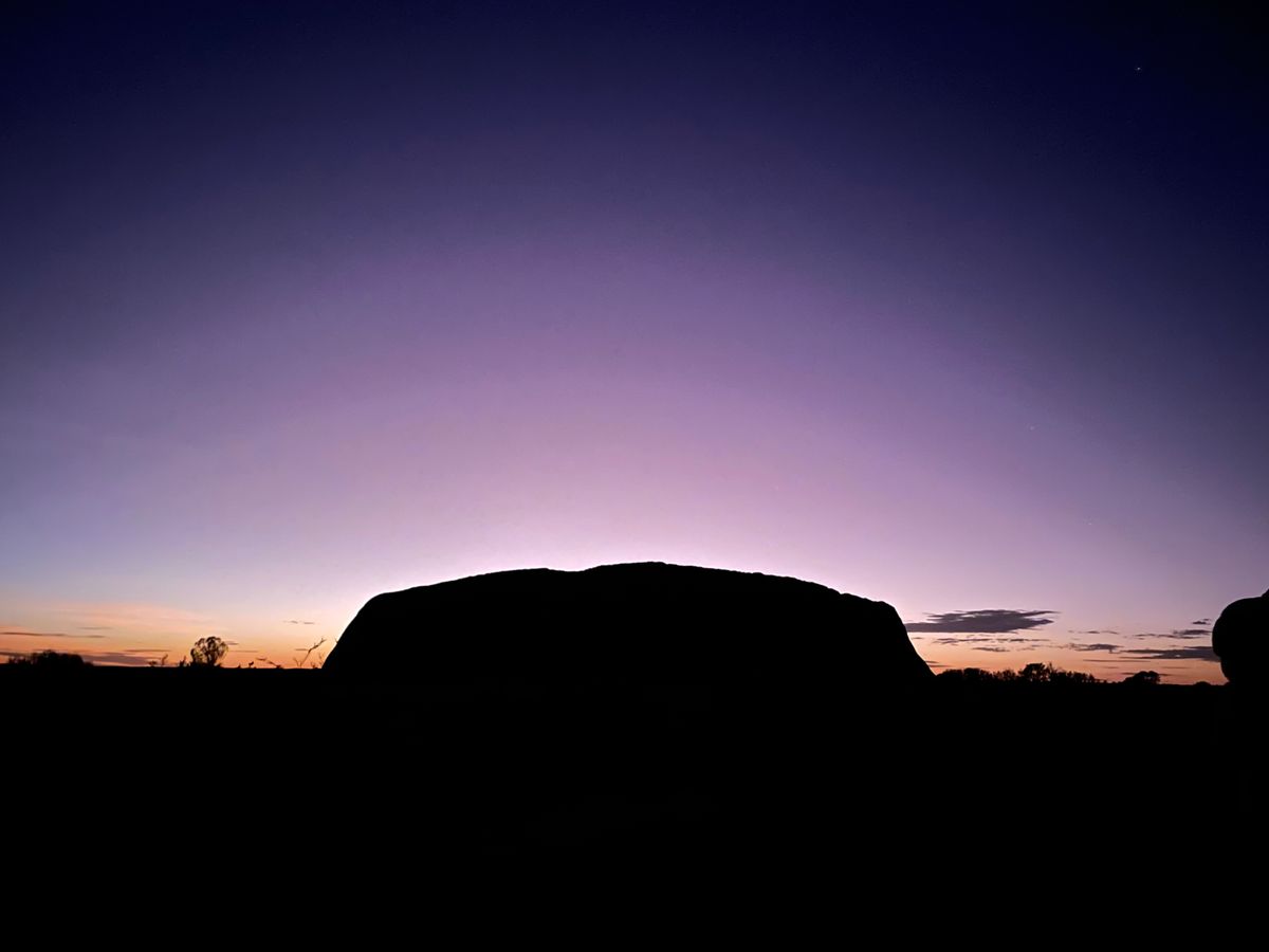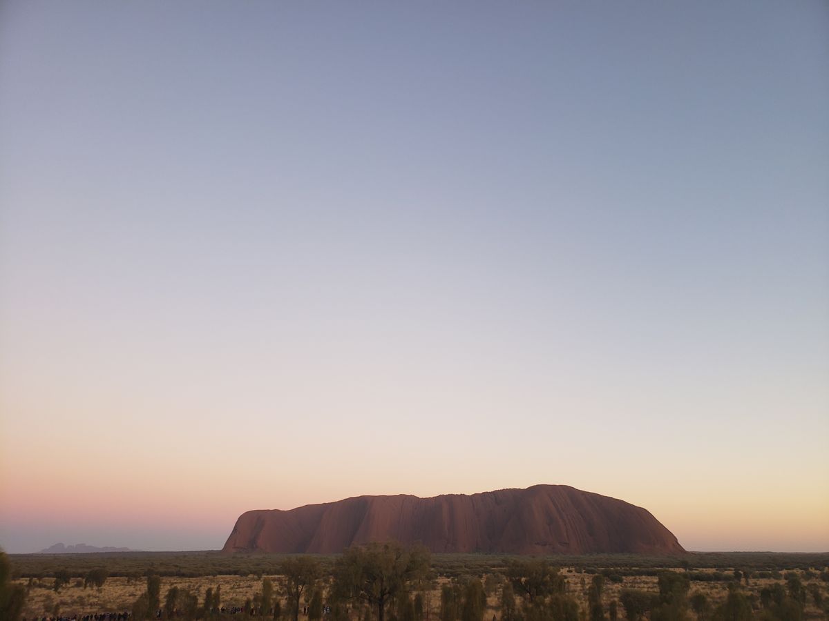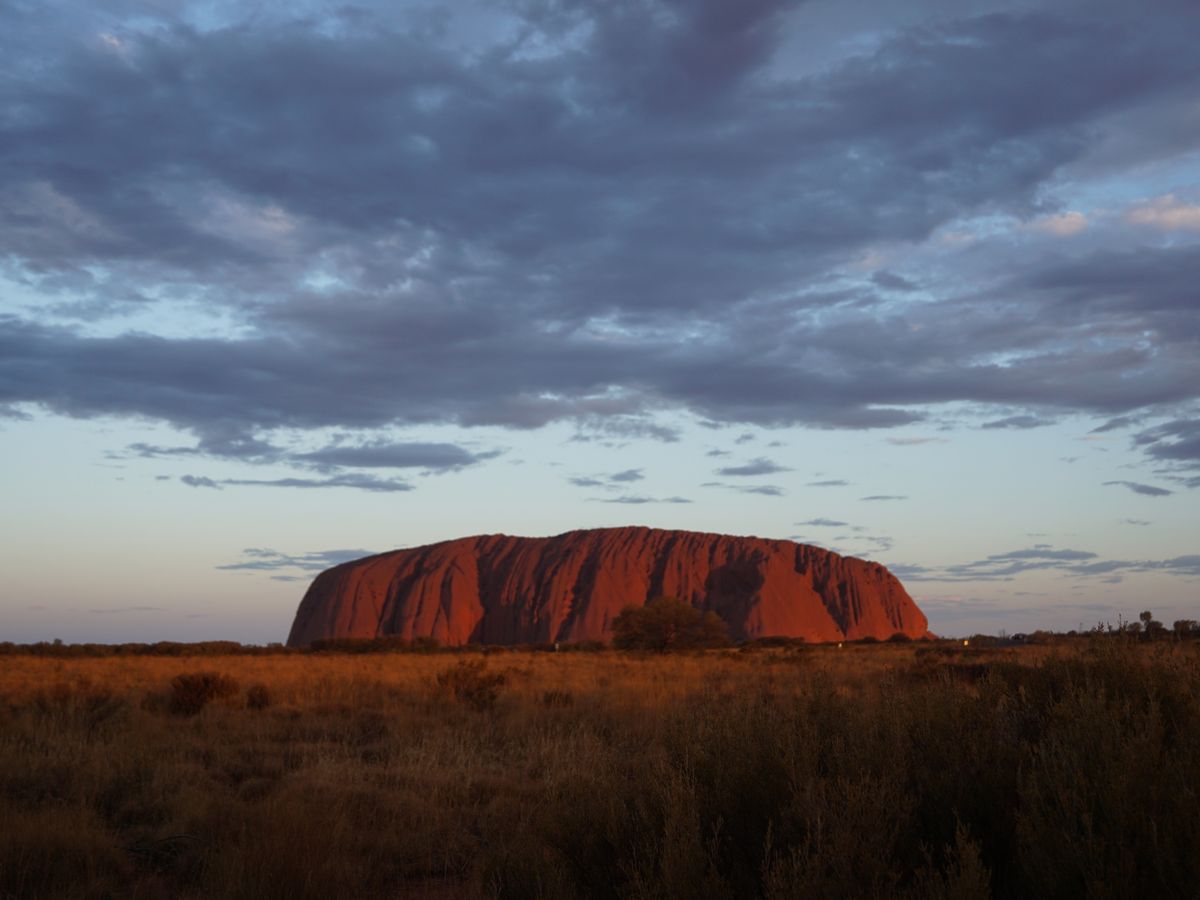 8月のウルル。日中は25℃、夜は10℃まで気温が下がりました。夏から冬くらいの服装の幅があった方が冬場はいいと思います。