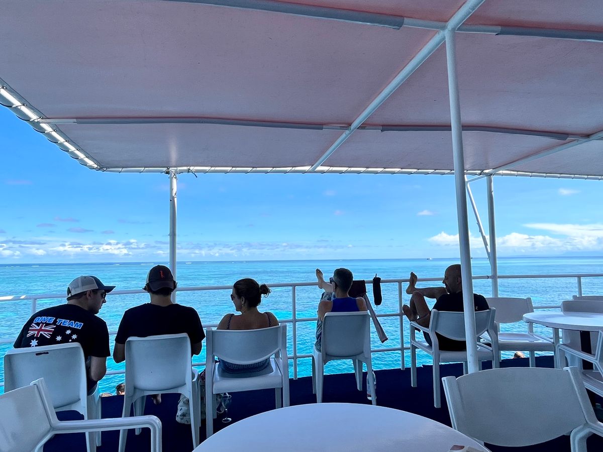 ちゃんと読めばどこかに書いてあったかもしれないけど、船はグリーン島経由で、グリーン島とアウターリーフのツアーのグリーン島無バージョン。