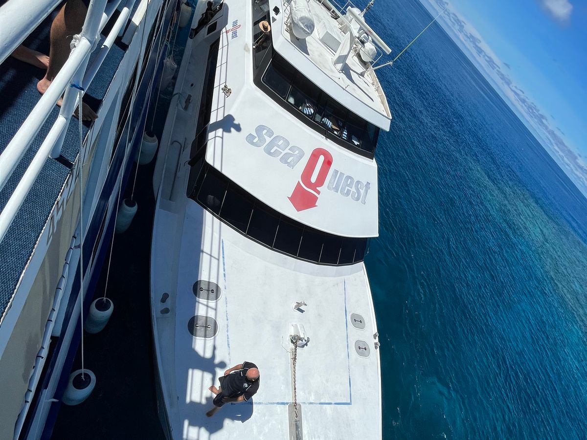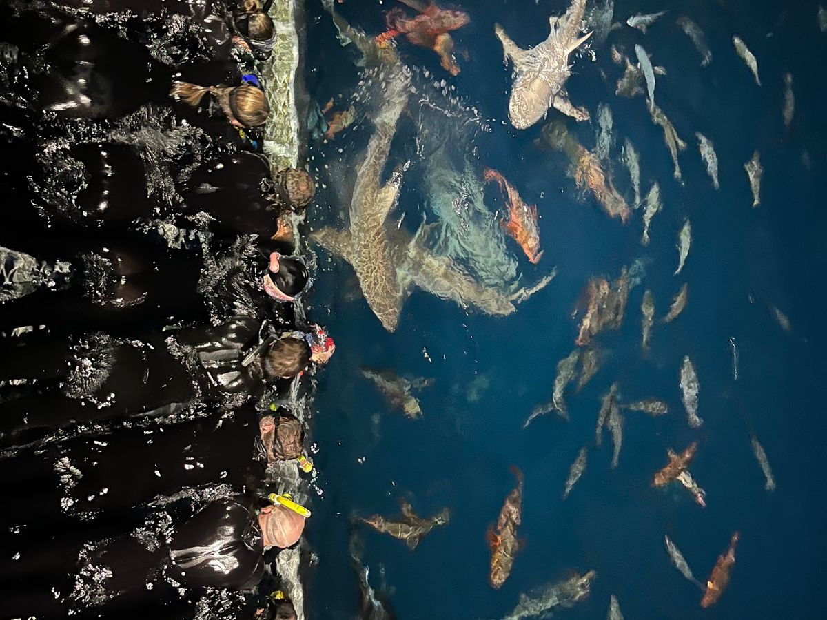 私たちは疲れて参加しませんでしたが、夜にはナイトダイビングや、シュノーケルのイベント(サメを呼び寄せたところに船の台を沈めて近くで写真を撮れる)が開催されていて、参加された方達はとても楽しそうでした。