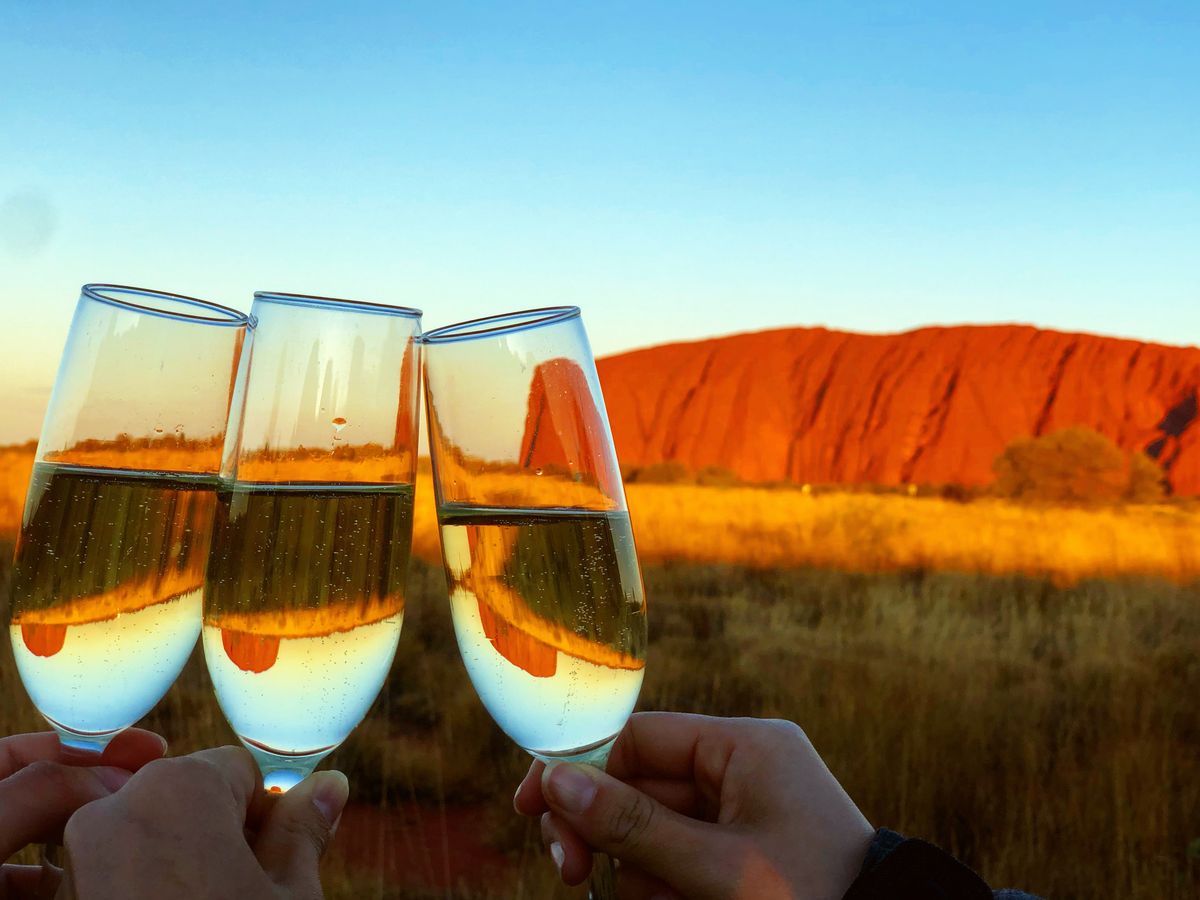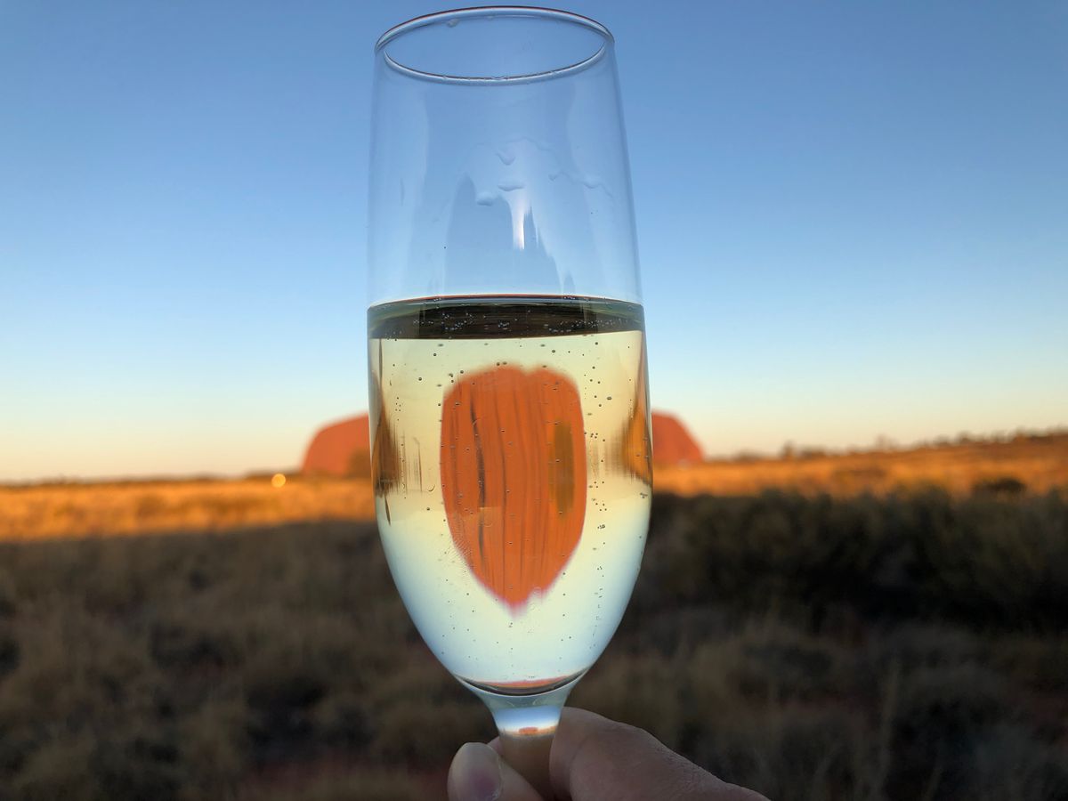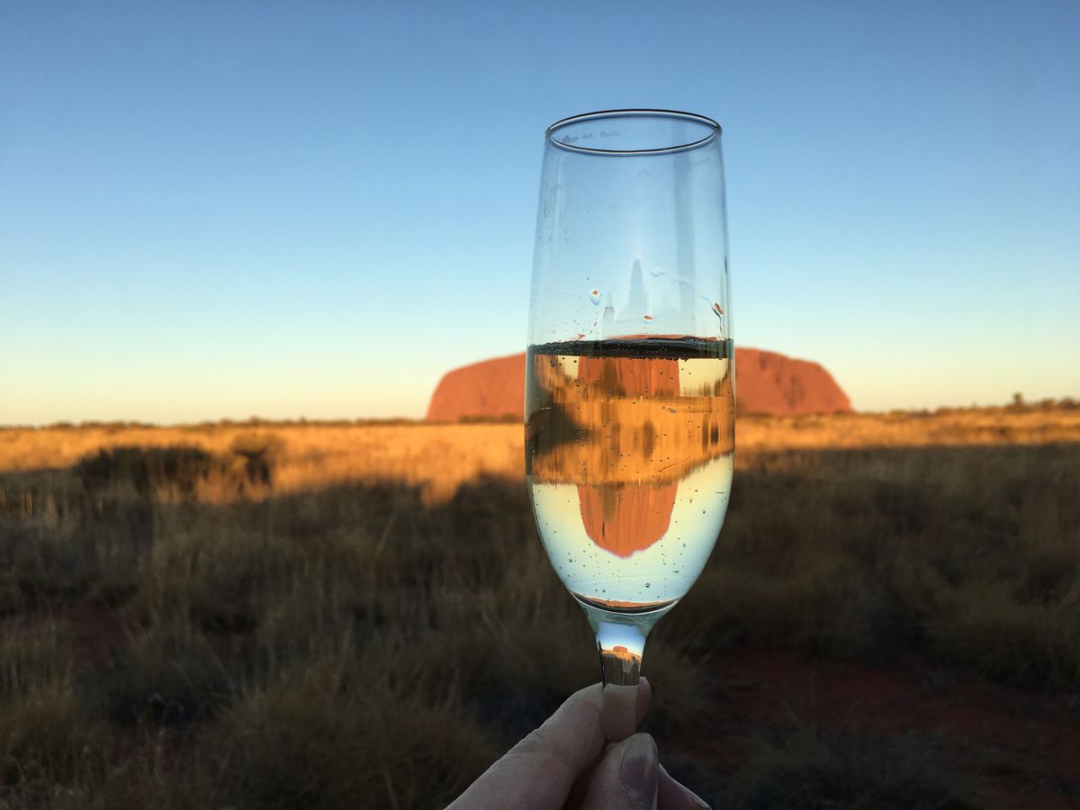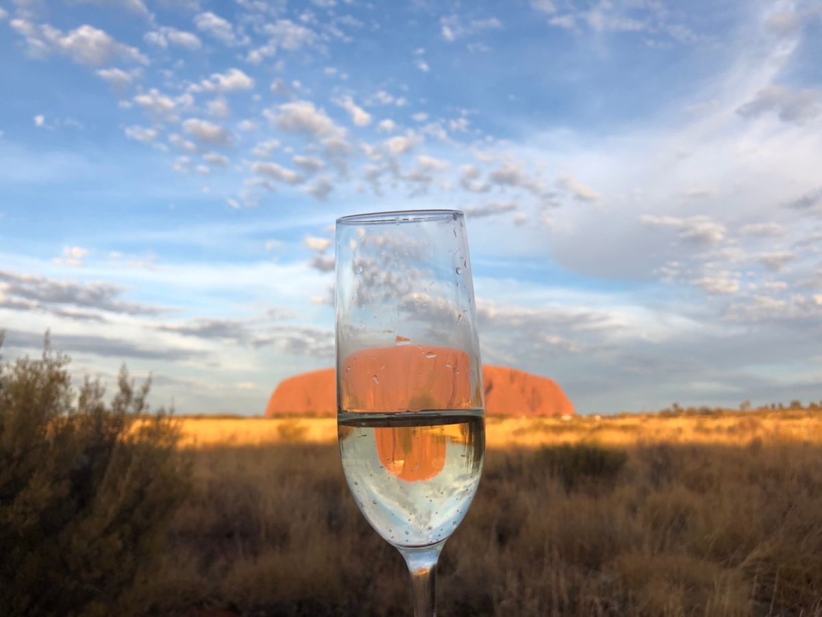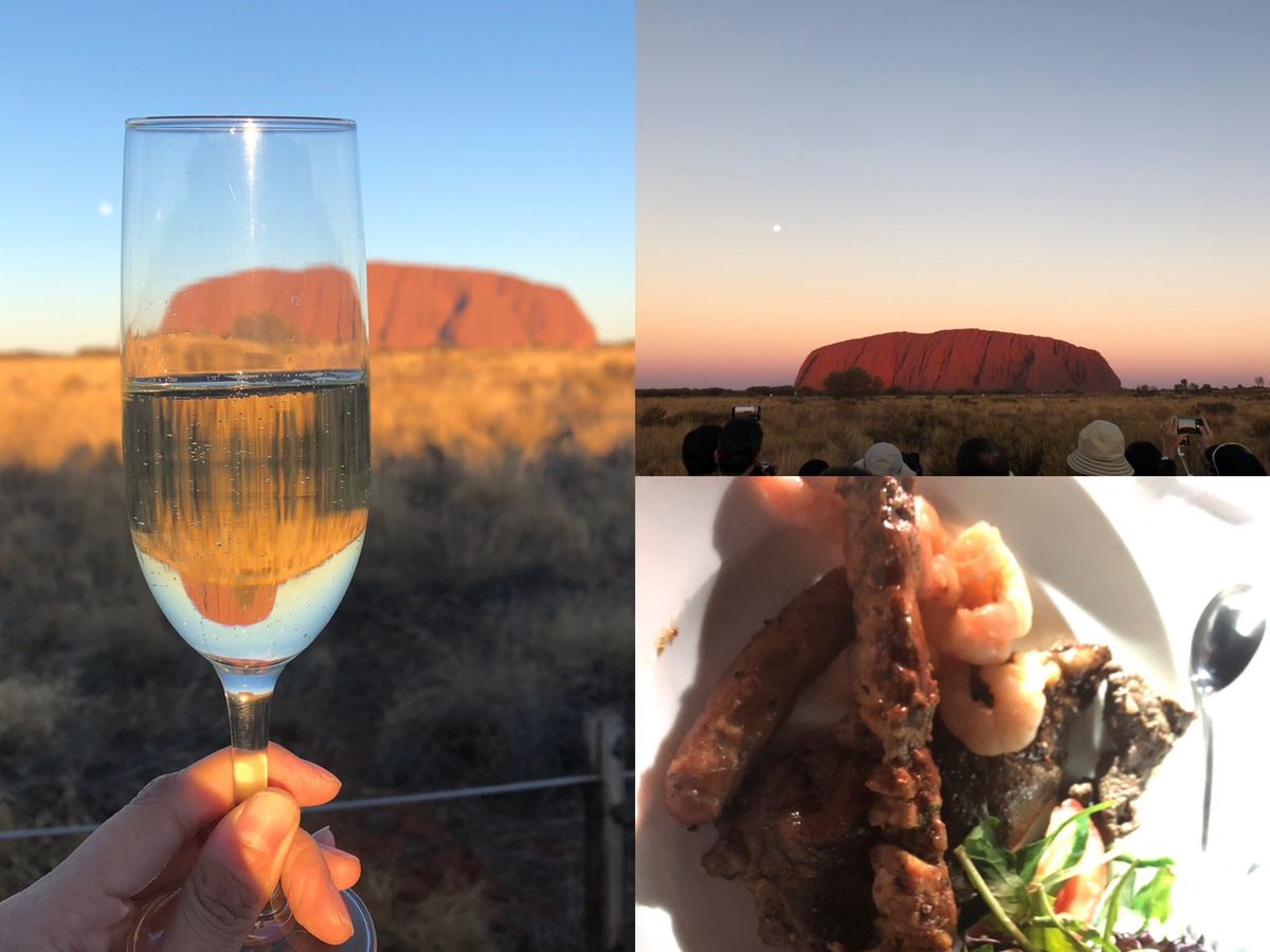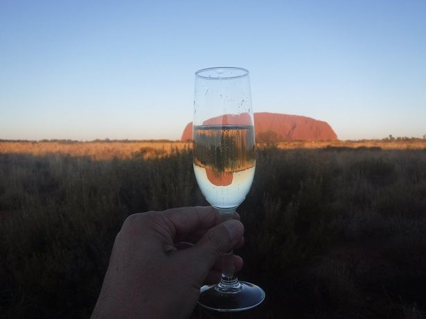 日没前からスパークリング片手に赤く染まるエアーズロックを見ました。