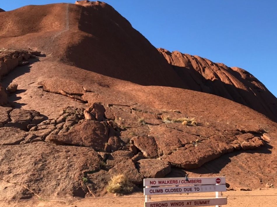 滞在した3日間は雲ひとつない晴天でしたが、それでもウルルの登山中は信じられないほどの風でした。斜面も急でトレッキングシューズ履いてきて本当に良かったです。