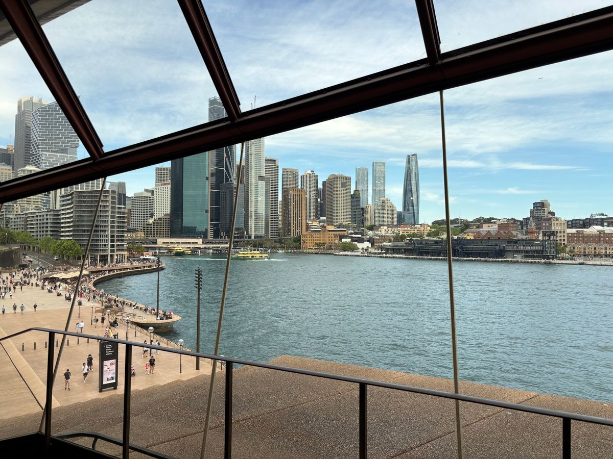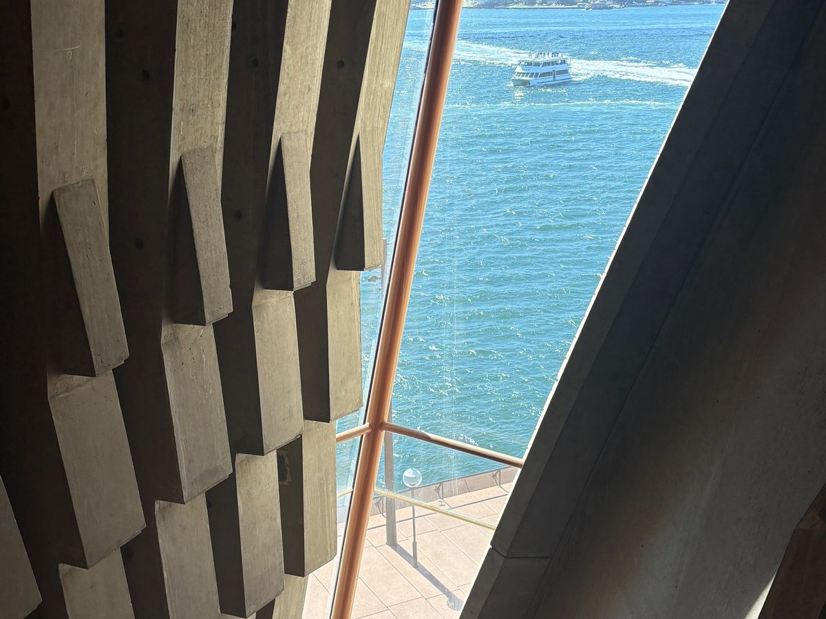 朝1番目の見学でした。オペラハウスの中からガラス越しに見える外の景色も素敵です。