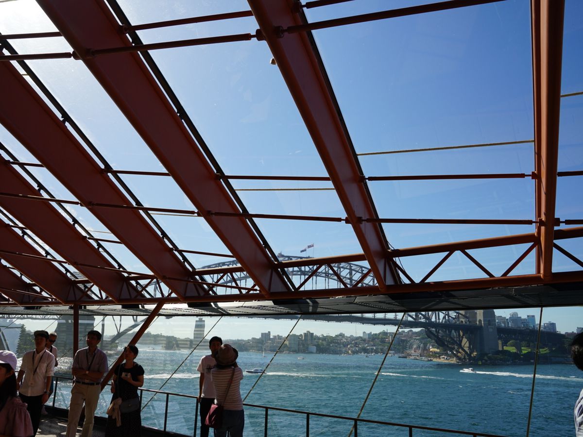 オペラハウスの設計から完成までのドラマを知り、実際に座席に座ってホールを体感しながら設計や設備の特異性を学べました。また、建屋からのハーバーブリッジや湾内の景色も絶景でした。