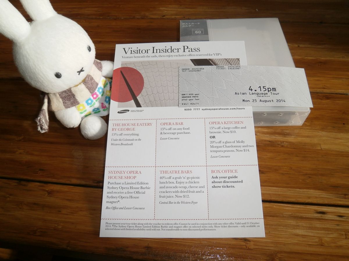 予約後にその時間だと大ホールが見られないことが分かったので、当日早めの時間に行ったらオペラハウス受付の人が快く変更してくれた。ネット予約時にその点が分かるといいのに。