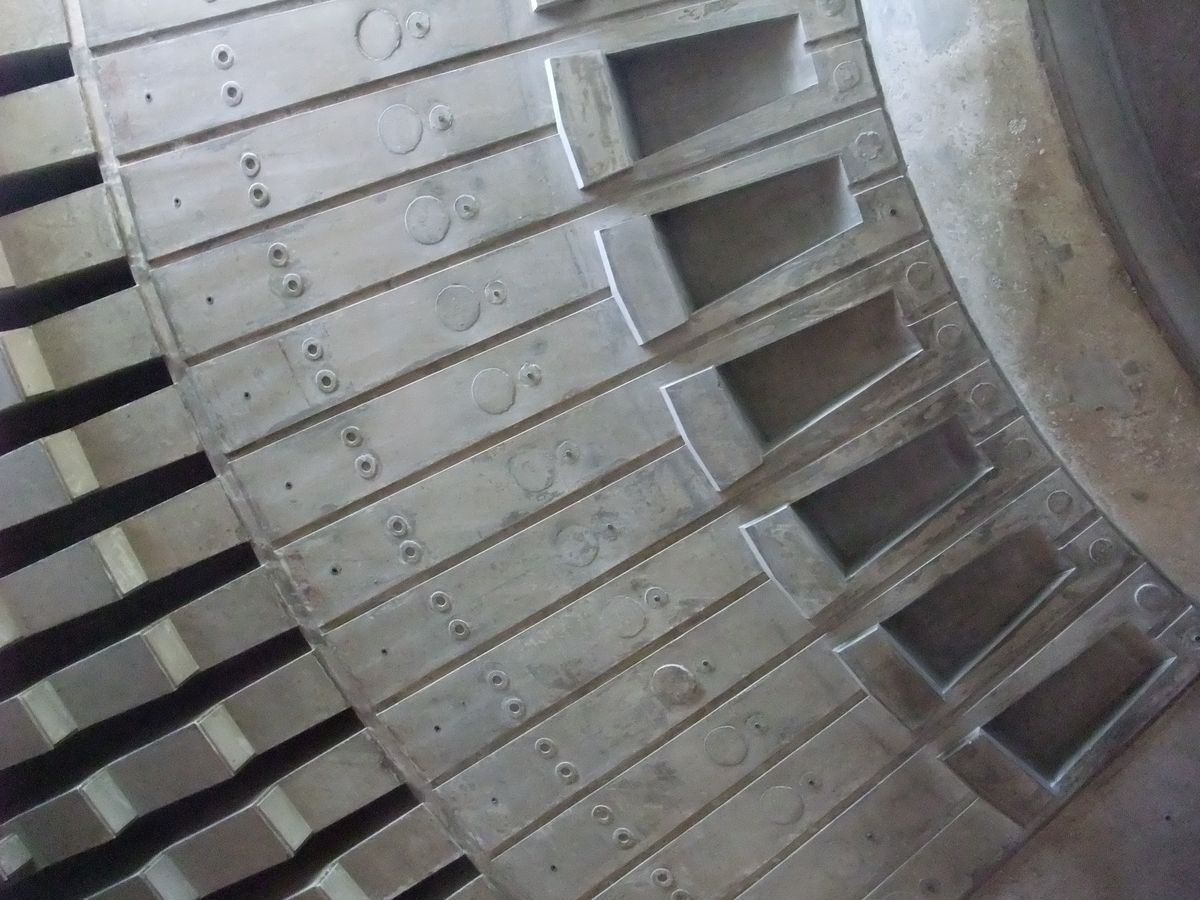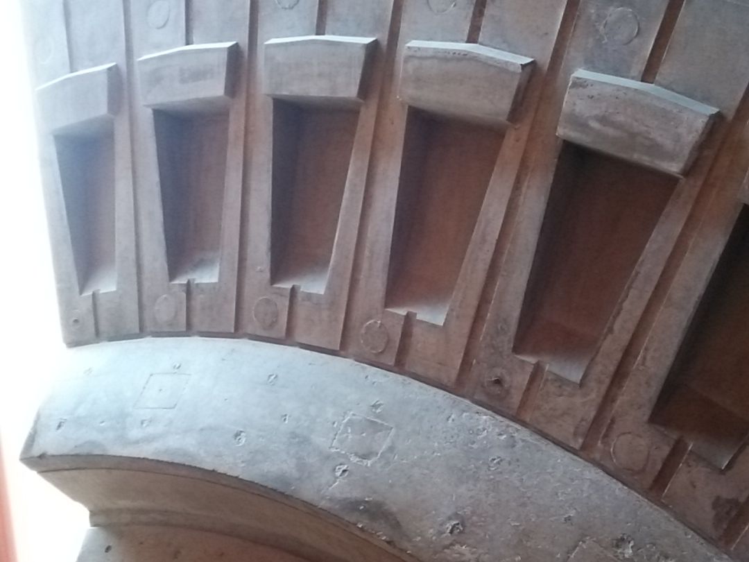 壁面には、何とも芸術的なコンクリートの型枠そのままの形や木製の凝った装飾が見られます。