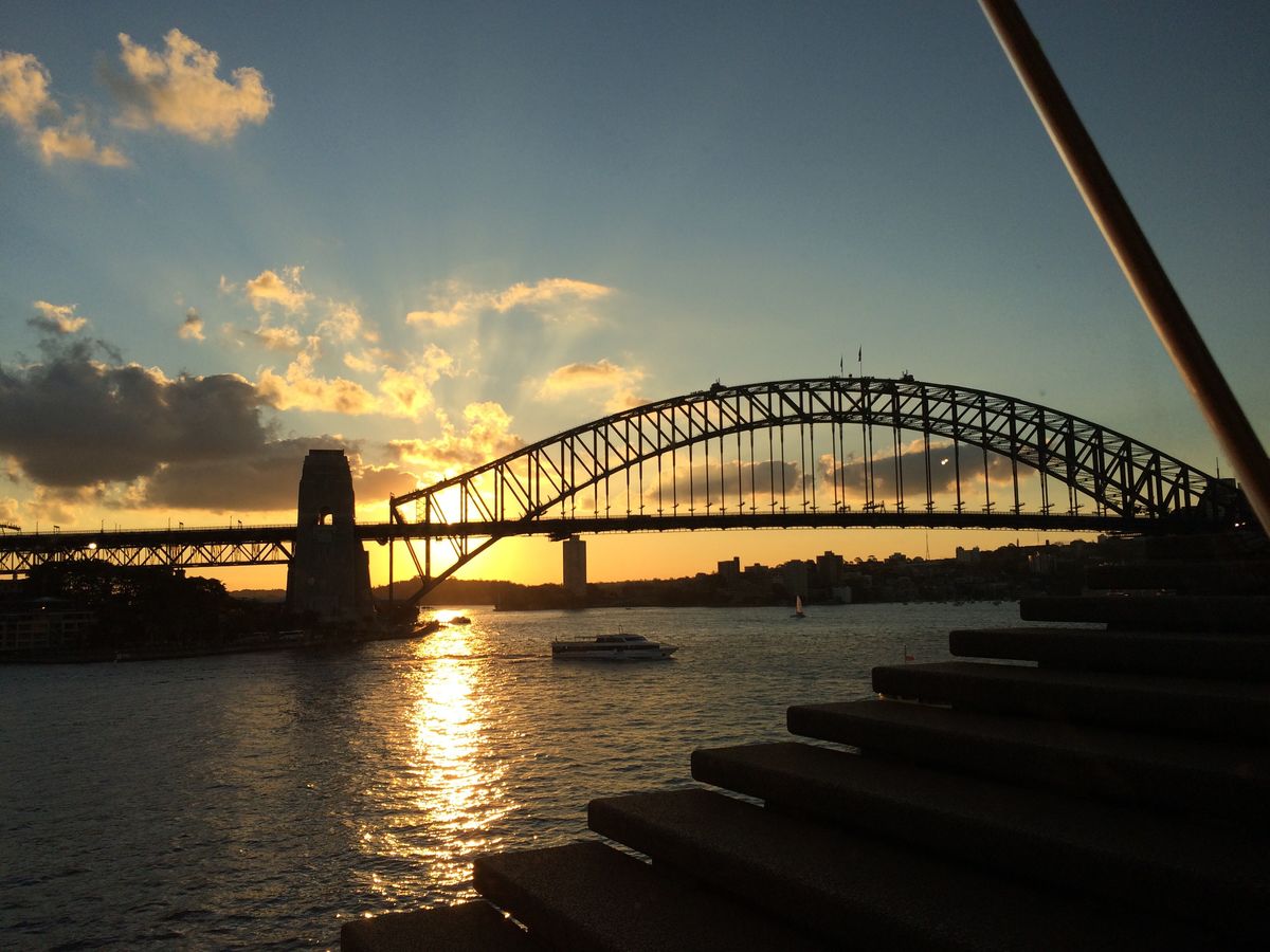 クルーズとのコラボ企画で、最初は予定なかったオペラハウスの内部を見学できるツアーに参加しました。ガイドのタカコさんのかなり詳しい説明により、30分のツアーはあっという間でした。夕方だったため、見学中に見えたハーバーブリッジが夕焼けに染まって綺麗でした!