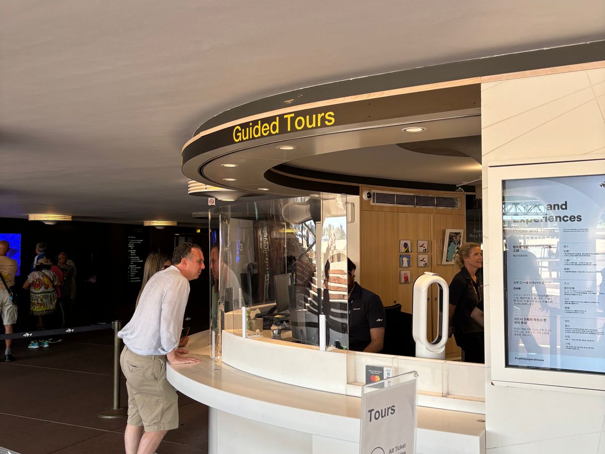 集合場所はオペラハウスのずっと手前にあるエスカレーターか階段を降りて、突き当たりのチケット窓口で、バウチャーを見せて、チケットを受け取ります。