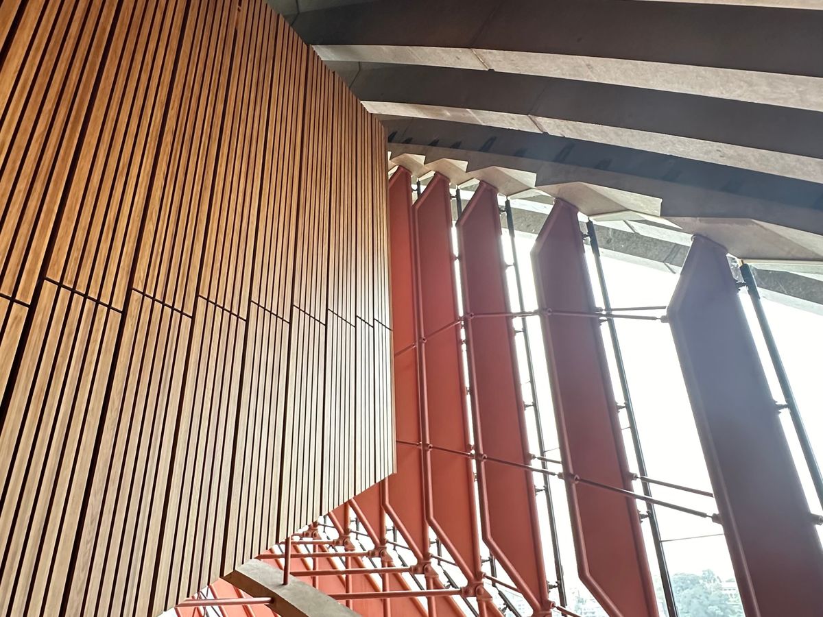 オペラハウスの建設過程の話を聞いてから改めてオペラハウスを見ると感慨深いものがありました。チケットを購入しないと入れない場所やコンサートホールに行けて、コンサートホールではたまたま学生の合唱団の皆さんがリハーサルを行っておりオペラハウスの音響の良さを体感することができてとても貴重な経験になりました!
