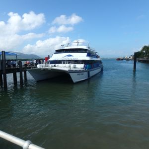 船ではティーサービスがあると書いていましたが、出航する前にすでに終わっていました。席も早いものがちなので、早目に乗船していた方がいいかも?グリーン島はアジア系観光客が多く、海は思っていたほど透明度が高くなかったです。2km程沖合に行くボートツアのシュノーリングに申し込んでいたので、そこでは綺麗なサンゴ礁と魚が観れました!クラゲ対策のスーツはAUD8でレンタルできて、日焼け対策にもなってよかったです。