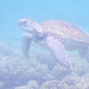 ウミガメがプカプカと浮かんでいて、