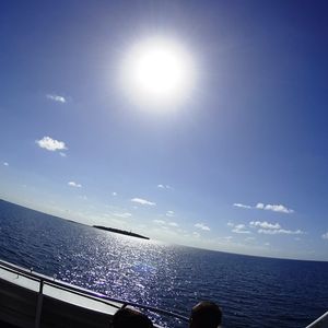 晴天の中を風を切って進むクルーズ船。眺めは抜群です。