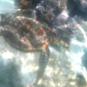 ほんの少し泳ぐと、水中にカメを発見!動かないなぁと思ったら、どうやら寝ていたみたい?ゆっくり写真を撮ることができました。