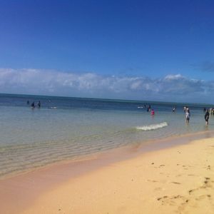 8月お盆休みに行ってきました。南半球は冬とはいえ照りつけんる太陽は夏そのものでした。30分も甲羅干しをしているろじりじりと背中が痛くなりそう。しかしやはりそこは冬、海水だけは少々冷たくウェットスーツを着ていないと胸まで水に入るのはちょっと冷たいかな。外国人は平気で泳いでいましたが。行きの高速船は展望デッキにいたので風が強く、かなり揺れて50分が長く感じましたが、途中くじらに遭遇。船がスピードを落とし近くまで寄ってくれたのでまじかに生くじらを見ることができ感激でした。
