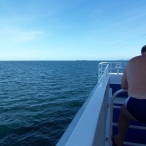 島ではのんびりしたかったので、行きは朝一番の8:30の便、帰りは最終16:30の便で帰るようにしました。当日は、天気は曇り(一時雨)で、島まではまさに「上に下に」のスリルあふれる船旅でした。天気が荒れると外海はこのようなかんじになるそうです。(私は酔い止めを飲んでも酔いました。。。)