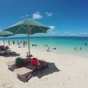 ビーチのパラソルで休憩しましたが有料のようでした。