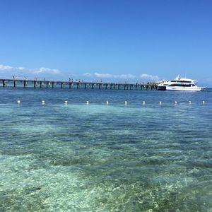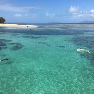 ケアンズからは一番近くて、バリアリーフの海が楽しめるということで朝一の船に乗りグリーン島に行きました。行った日はオーストラリアでは春休みなのと、シルバーウィークとかかさなりチェックインでかなり並びました。かなりの列だったので、乗船に間に合わなかったらどうしようとひやひやしましたが無事乗船でき、紅茶、コーヒー、クッキーが無料だったのでいただきました。しばらくして座っていると日本語で色んなアクティビティーをしませんかというお声がかかります。その日は天気がすごくよくてせっかくなのでスカイセーリングを申し込みましたが、ツアーについているシュノーケリングだけでも、十分楽しめました。私はあまり泳ぎが得意ではないですが、足がつくところでも水がとてもきれいで大きな魚も間近を通っていました。水中カメラを持っていくべきだったと後悔しました。14時半の船で帰りましたが、パラセーリングをしたのでワニ園?等は見る時間がなかったですが十分楽しめました。とにかく行く方には十分な日焼け止めと水中カメラ持参をオススメします。あと、シャワーが野外にしかなく、そこで裸になって最後洗うことはできません。水着のまま洗ってトイレにある更衣スペースで着替える感じになります。