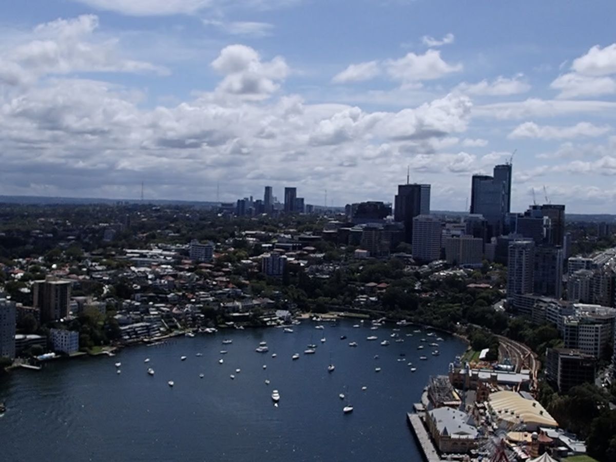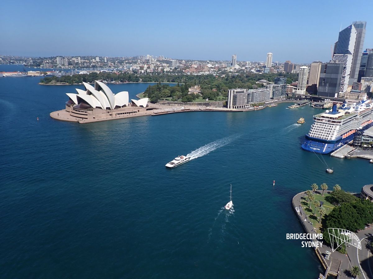 湾内の賑わい、オペラハウス、豪華客船、行きかうヨット、橋のふもとのロックスの街並み、ビル街、車の往来から遠くの町まで一望でき、本当に素晴らしかったです。