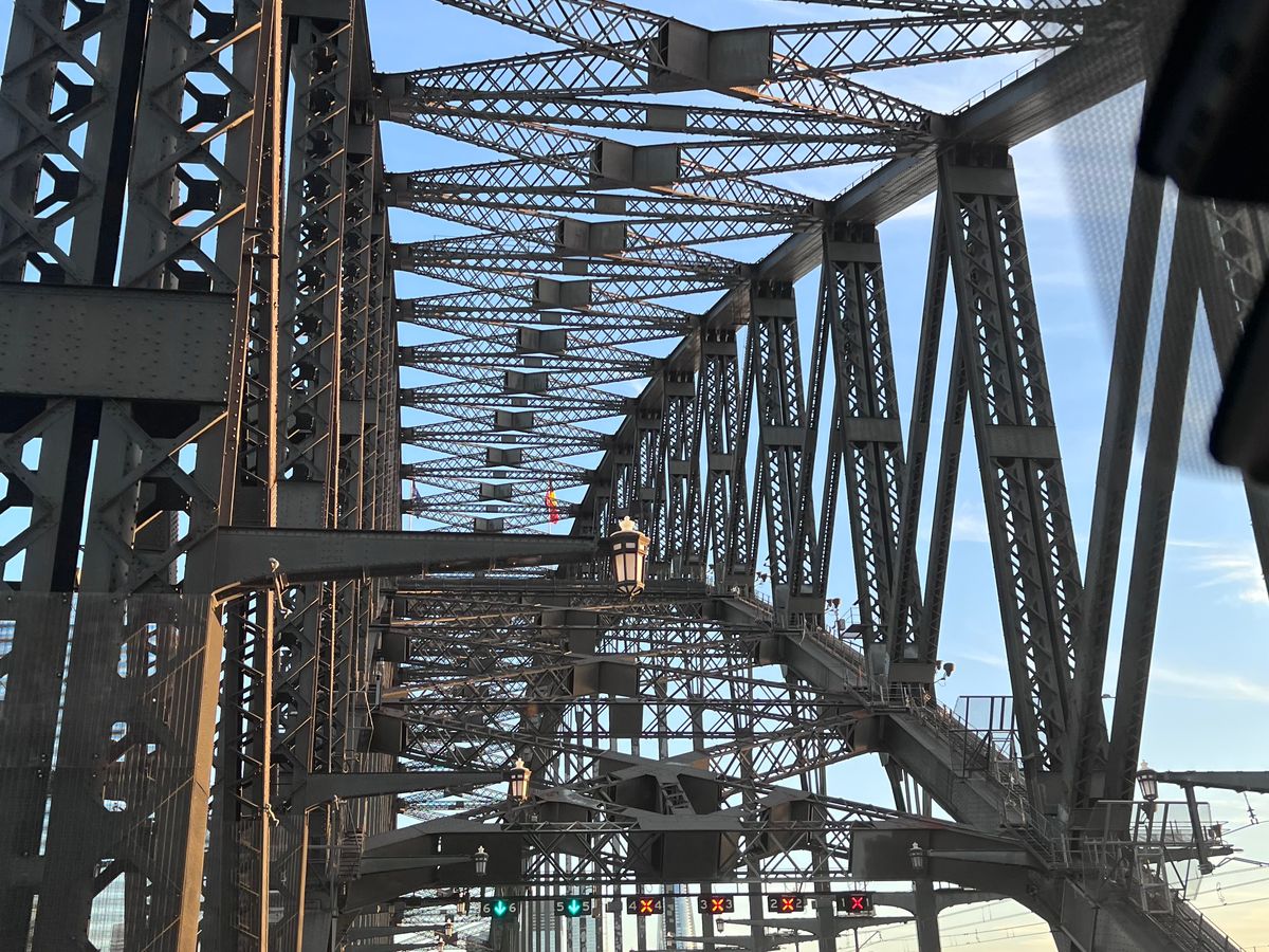 下にいる人が手を振る様子が見えるくらいの高さで割と怖い。インカムからガイドの方が景色やハーバーブリッジの説明をしてくれる。