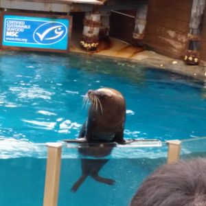 私たちが参加したのは、アザラシのショーの2回目。(現地の季節は秋ですが)天気がよく気温も高かったので、