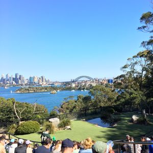 無料のショーで、開園15分前に席に着いたが、開園直前は立ち見客がある程人で溢れていた。シドニー湾とCityの建物を臨む風光明媚な丘で行われるショーは、良く訓練された様々な大きさや色の鳥が観客の頭上すれすれを飛びスリル満点で楽しかった。