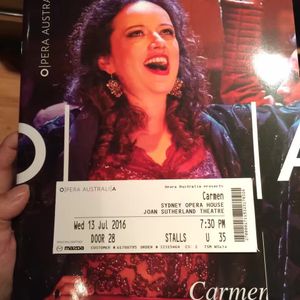 夜7時半開演のオペラで、今回は運よく名作の”カルメン”が上映中でした。冬のシドニーの夜は結構冷え込んでましたが、ローカルの観客は皆さんおしゃれな姿で、あaa~楽しんでいるな~という感じでした。