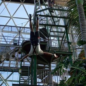 シドニーではコアラを抱っこすることが州の決まりで出来ないためケアンズへ。コアラを抱っこするためにケアンズへ来たと言っても過言ではない私達は到着してチェックインも早々にワイルドライフドームへ。ワイルドライフドーム自体は鳥が放し飼いにされ、大きな鳥小屋に入った感じ。たしかに鳥はいろんな種類がいますが、ドームは小さくすぐに全部見てしまえます。そこで空中に作られた丸太橋を渡ったり、バンジーみたいに高所から飛び降りるアトラクションありで工夫はされています。(バンジーではなく、ワイヤーを付けて降りてくる感じ)