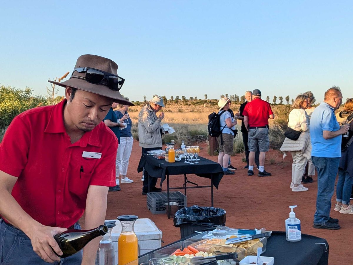 最後におつまみを食べながらウルルの夕焼けを楽しむのがとても最高でした!陽気なお兄さんとお姉さんがガイドで一緒にいてノリノリでとても楽しかったです。息子も積極的に話しかけていました。