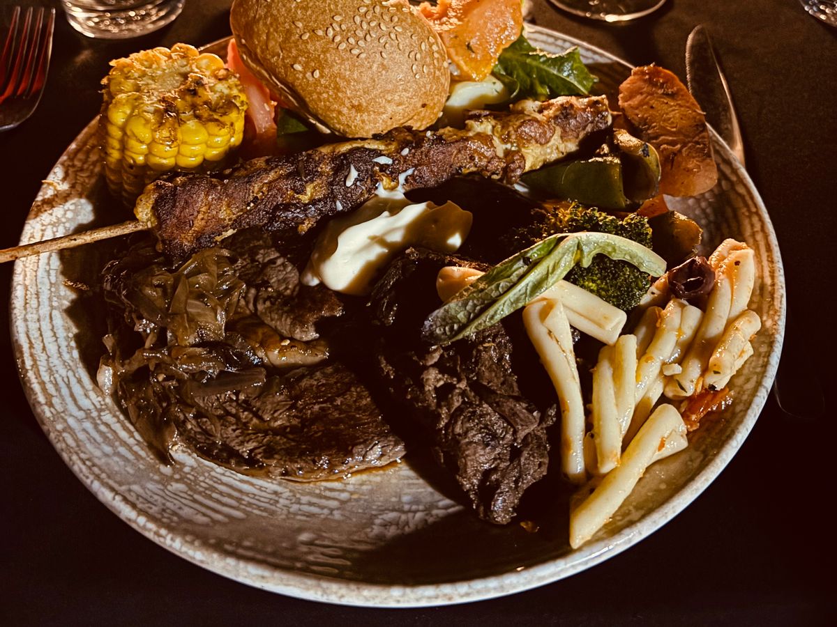私は牛と豚が食べられないのですが、チキンの串焼きとかもあってボリューム満点でした!魚介はなかったです!