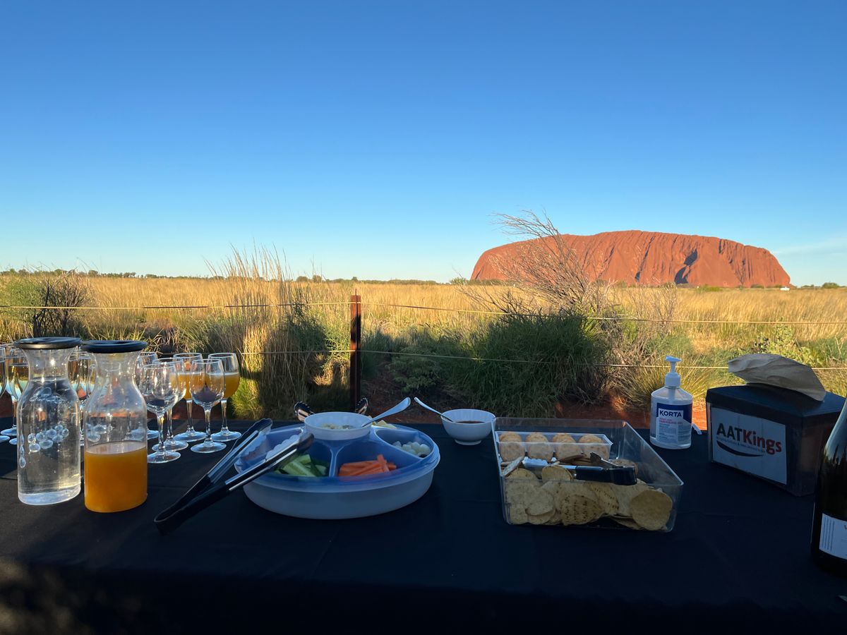 最後にサンセット会場に移動し、シャンパン、ビール、ワインといったお酒や、コーラ、スプライト、オレンジジュースといったソフトドリンクを飲みながら、夕日で刻一刻と変化するウルルの表情を眺めることができます。