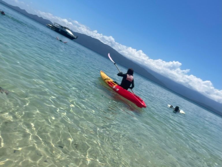 午後はカヤックやSUPをしたあと、家族でシュノーケリング。