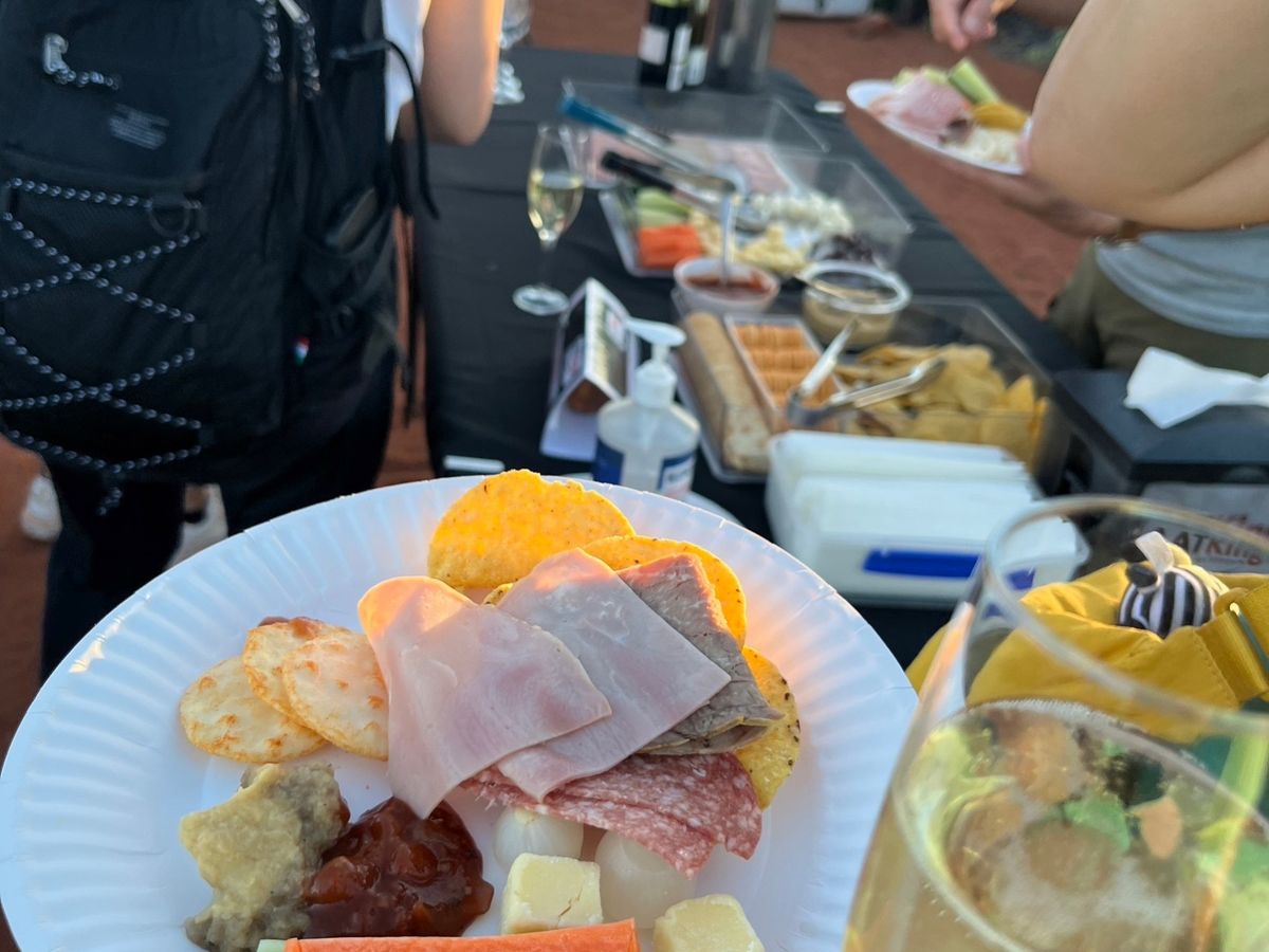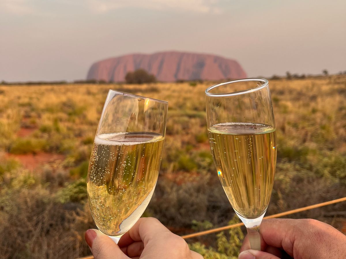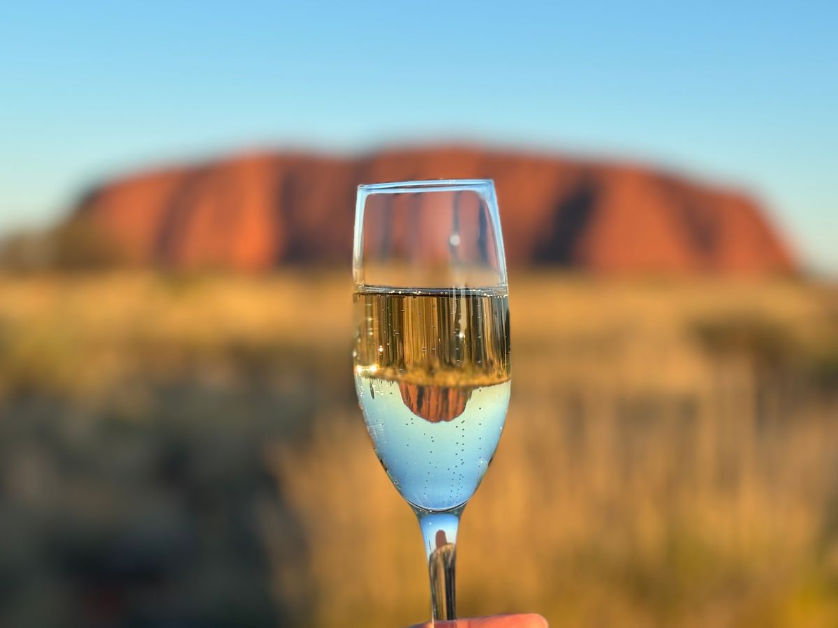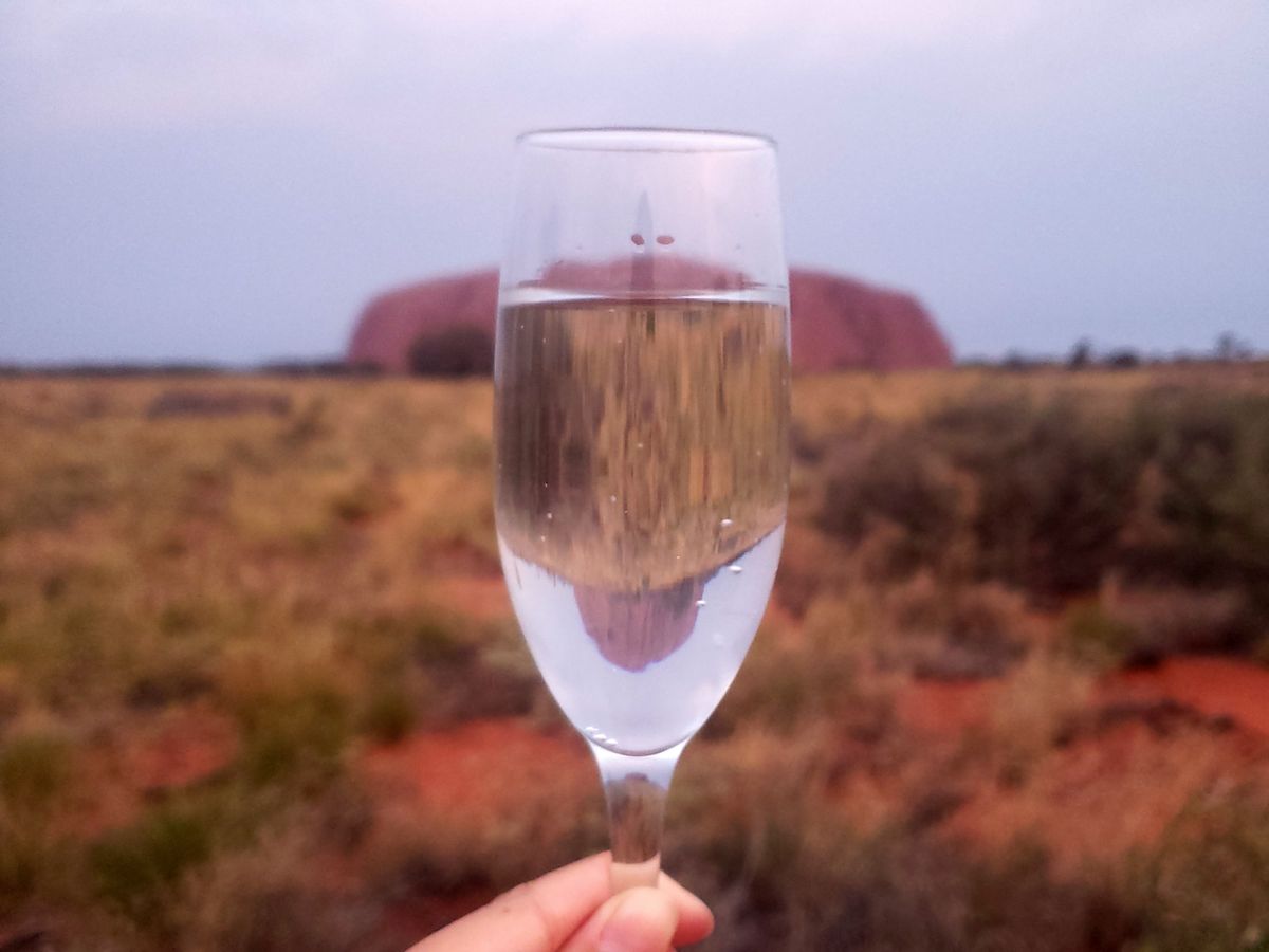 エアーズロックの近くまで行けて、実際に触ったり散策できてとても貴重な時間でした!近くで見るエアーズロックの迫力がとても印象的です。また、サンセットをみながら参加者のみんなとワインを飲んだりおつまみを食べて語らったのがとても思い出に残りました。やってみたかった、ワイングラスにエアーズロックを反射させて写真をとることができました!いろんな国の方が参加しており、友達もできて最高でした!