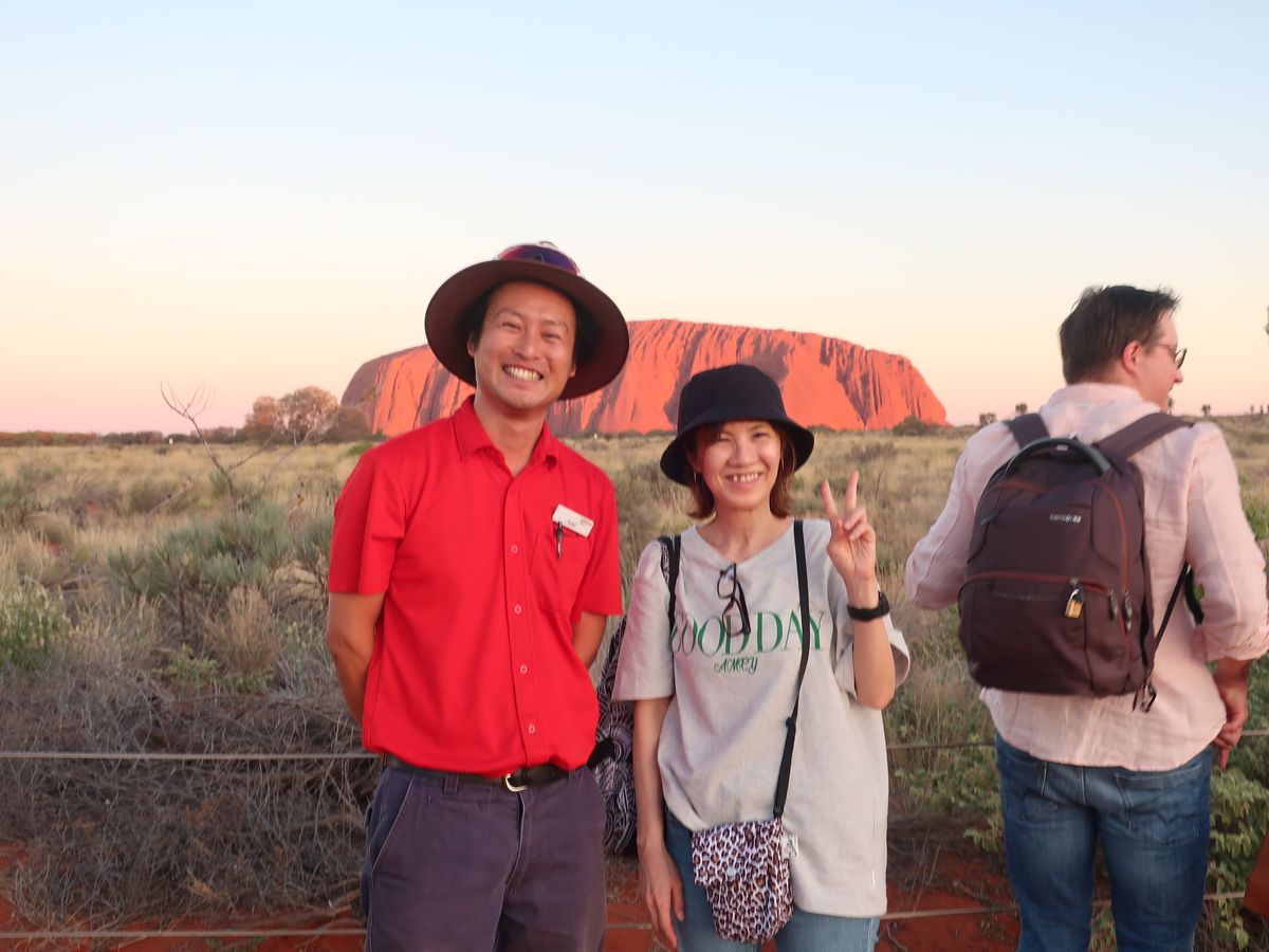 ツアー中、ウルルの歴史や先住民の方々についてのお話をたくさんしてくださり、とても興味深かったです。分かりやすく丁寧に説明してくださり、日本語のツアーにして本当に良かったです。ウルルに触ったり、サンセットを見ながらシャンパンを飲んだりできて最高の思い出になりました。1人でツアーに参加しましたが、ことあるごとにお写真撮りましょうか?とガイドの方が声をかけてくださったり、一緒にツアーに参加した方々ともたくさんお話ができてとても楽しかったです。ありがとうございました。
