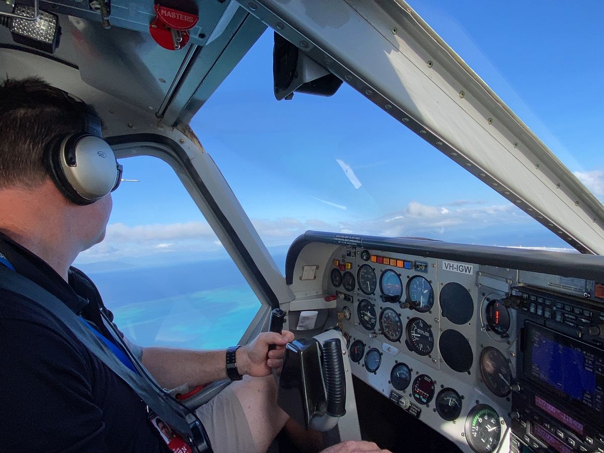 ひとりでの参加だったため、パイロットの隣の席に乗せていただきました。まず、そんな経験がないので大興奮。面倒な手続きもなく、さくっと離陸し、離陸してからはもう言葉にできないような大絶景。パイロットの方も優しく、コアラリーフをちゃんと分かるようにカウントダウンで教えてくれ、大満足でした。