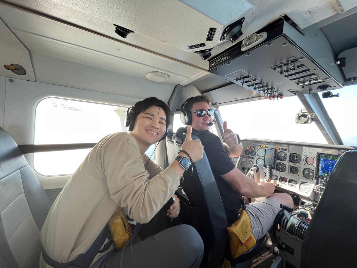 パイロットの方もノリが良く、上空に居る際に後ろの席に座ってきた夫と写真を一緒に撮ってくださりました!