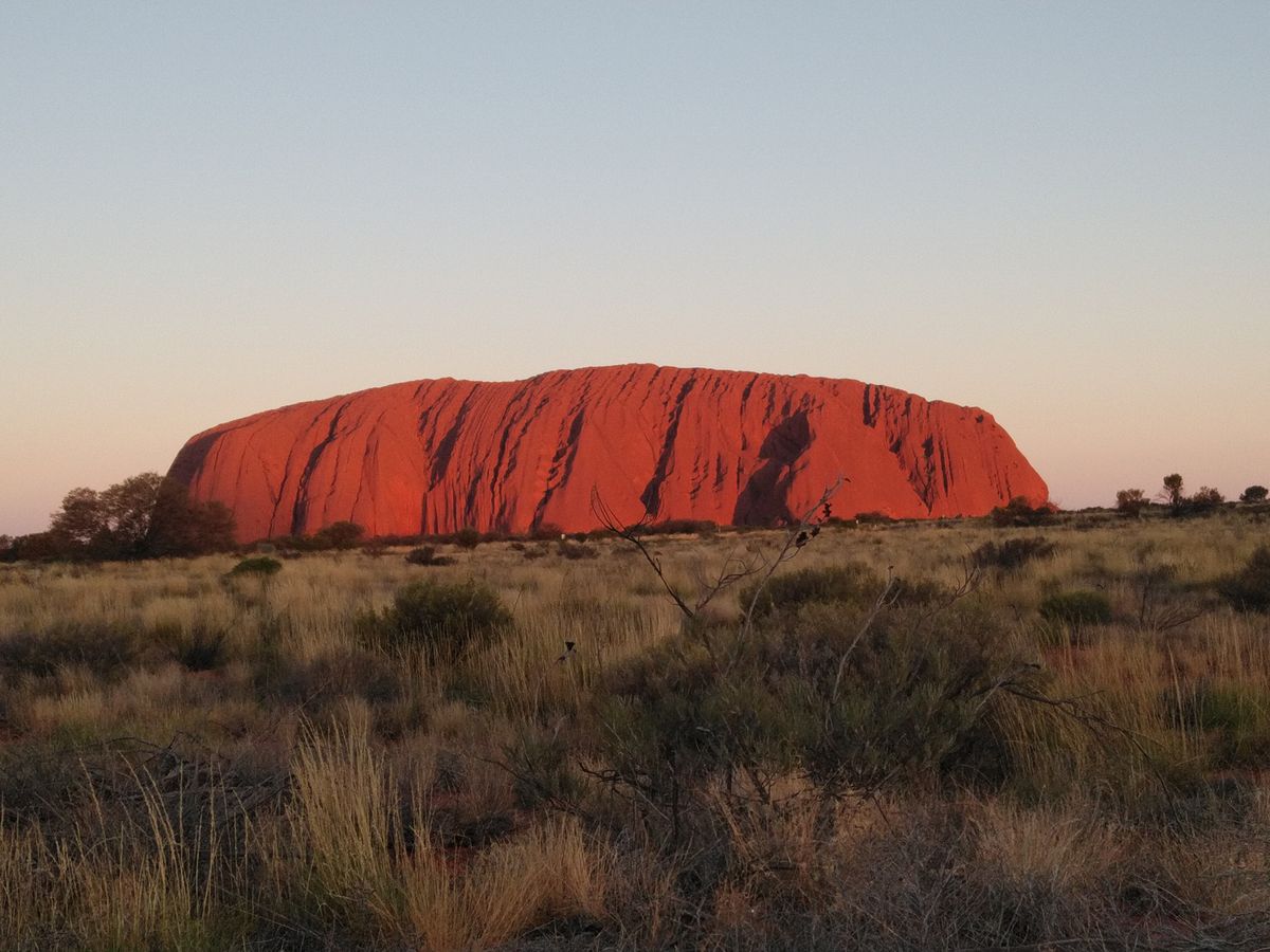 朝日、夕日にてらされてすこしずつ表情を変えるウルルの姿や、地平線から上りまた沈む太陽、そして空のグラデーションの変化は、Г素晴らしい」の一言に尽きます。