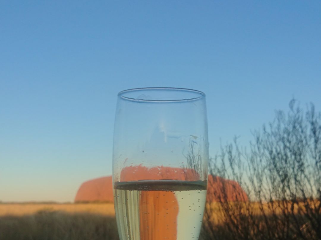 シャンパンと野菜やリッツなどの軽いスナックが配られ、いまかとサンセットを待ちました!もうすごく素敵で!!何枚も写真を取りましたがひのかげり具合でいろんなウルルが見れてとても綺麗でした