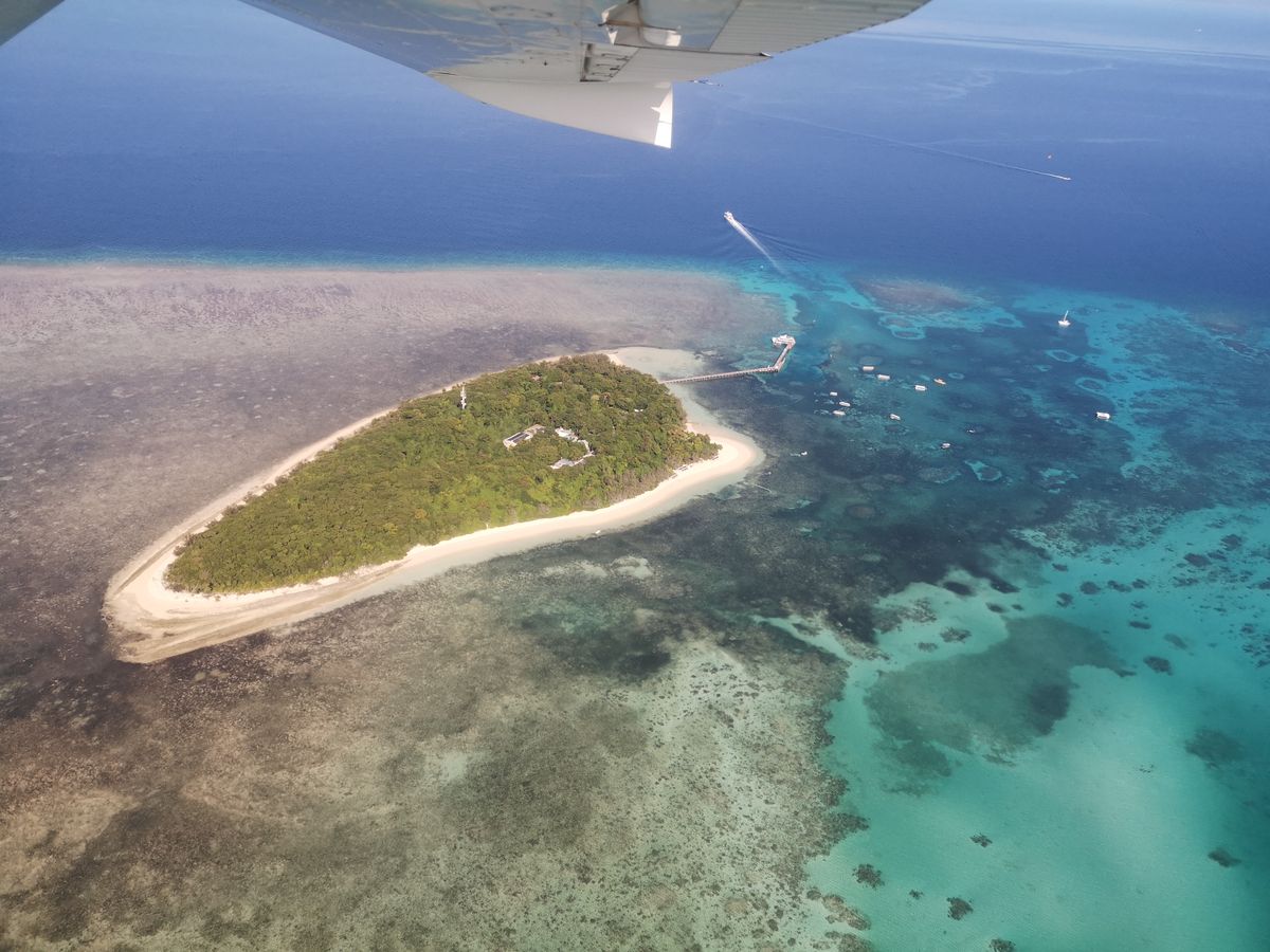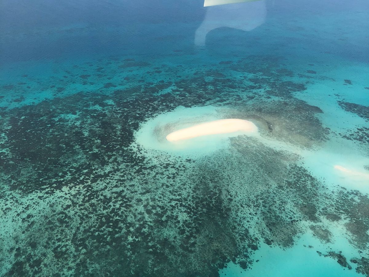 空から見下ろすどこまでも広がるサンゴ礁は本当に素晴らしいものでした。