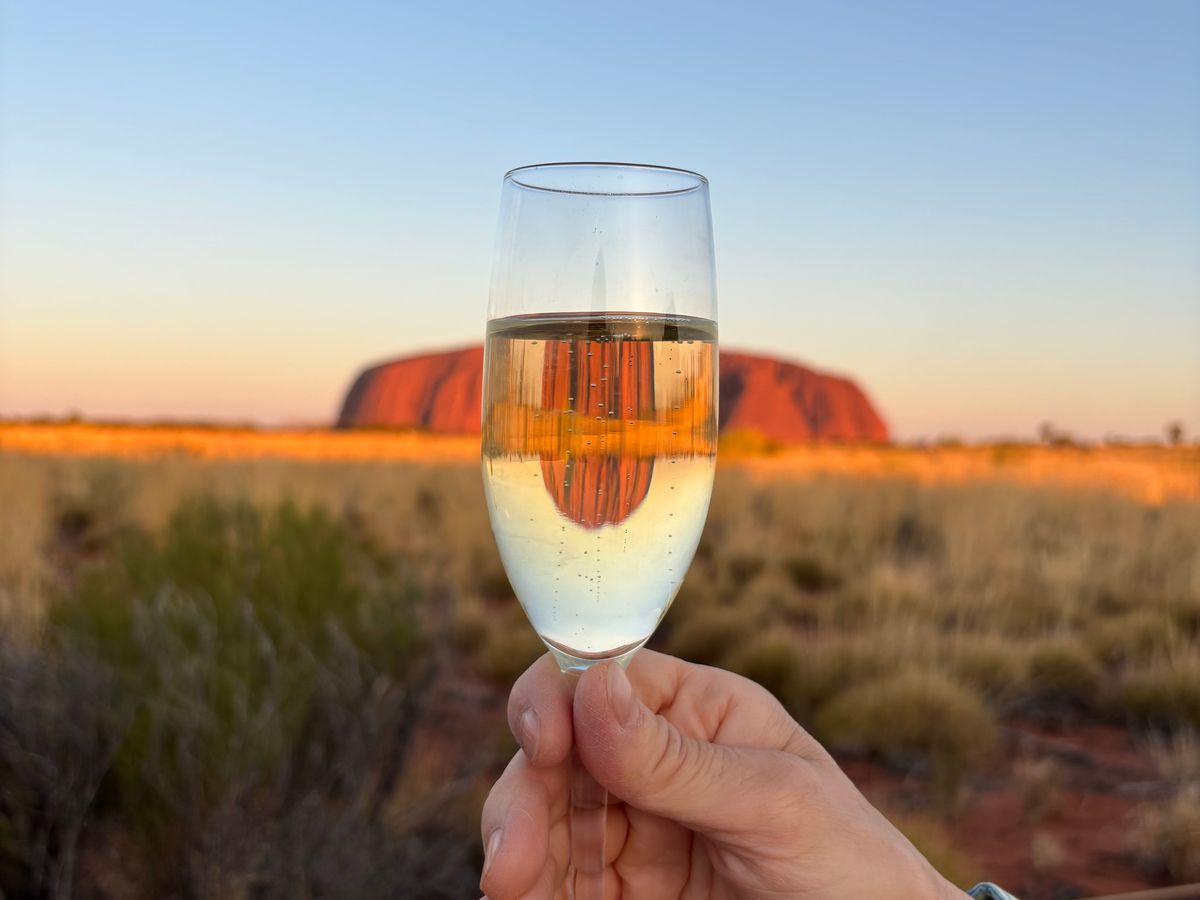 夕刻になり、スパークリングワインを飲みながら、夕日に染まっていく真っ赤なウルルを眺めることができ、この旅行の最大の目的を達成できた。途中、妻が体調を崩してしまったが、ショウタさんはじめスタッフの方々が迅速に対応してくださり助かりました(ありがとうございました!)。