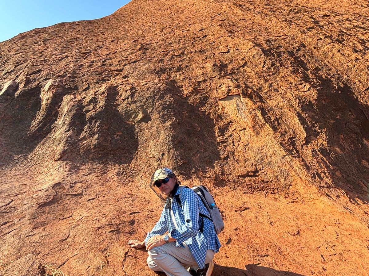 まずはカタ・ジュタへ行き風の谷であるクニヤウォークを散策。その後、いよいよウルルの麓へ。バスの中や散策の間、日本語ガイドであるショウタさんのお話に耳を傾ける。ショウタさんは大変博学で、ウルルの成り立ちや、ウルルの麓に住むアボリジナル・ピープルであるアナング族の暮らしや文化について幅広く教えていたいた。バスではウルルを一周し、普段見ることのできない方角から、今まで一度も見たことのないウルルの姿を眺めることができ、カルチャーセンターにも立ち寄った。また、ウルルの麓では貴重な水場を見たり、実際にウルルの岩肌に手で触れたりもした。さらには、アナング族が世代から世代へと継承している大切な教えについても、ウルルの岩肌に刻まれた跡などを見ながら説明していただくことができた。こうしたお話はこのツアーに参加しなければ知ることができないことなので、ただ遠くからウルルを眺め写真を撮るだけの体験とは全く違う、味わい深い体験となった。