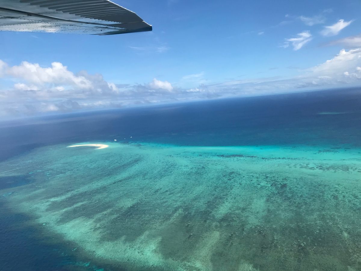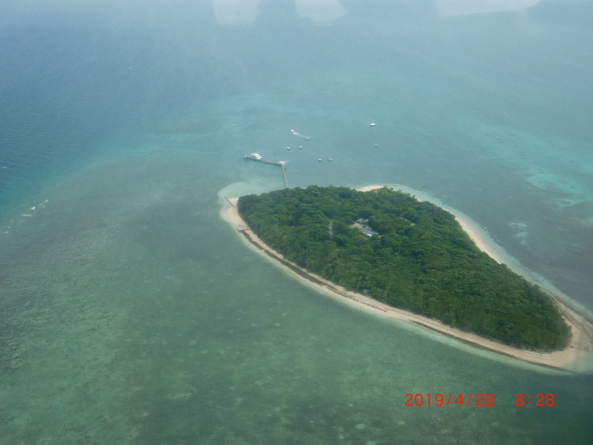 朝から雨模様で心配だったが、予定通り遊覧飛行に出発。リーフの方は日も差していて、十分空からの絶景を満喫できた。コアラリーフやミカエルマスケイなど撮影ポイントでは左右両方の席から見えるように旋回してくれるので安心。当日、13:00発の便で帰国予定だったが空港への送車も迅速で全く心配なく搭乗できた。