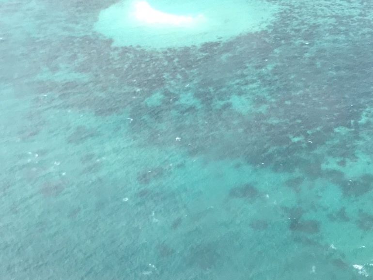 コアラリーフ近くになるとわかりにくいためパイロットが教えてくれます。どれ?とみんなわかるまで時間がかかりましたが、たしかにコアラでした。