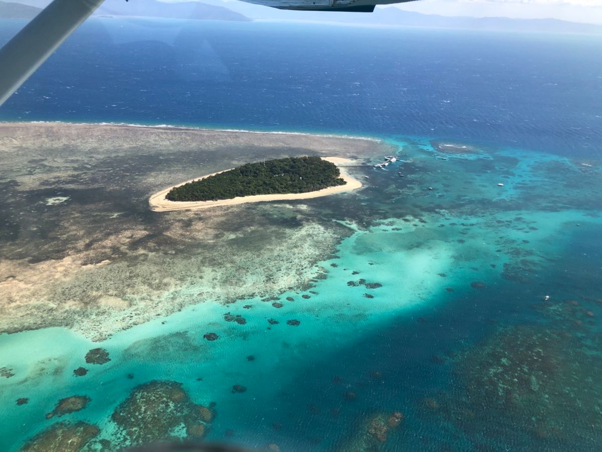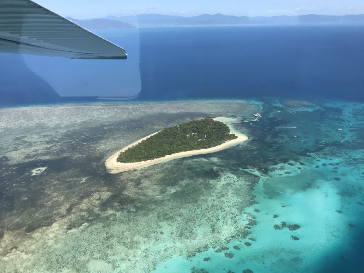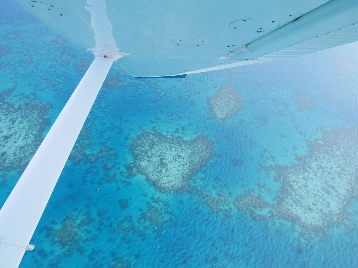 主人と10歳の息子と私の3人で参加しました。帰国日だったので、朝イチの30分コースでしたが、たまたま予約が私たちだけで、4人乗りのセスナ機貸切とラッキーでした。主人は副操縦士席だったので、パイロットになった気分と興奮していました。上から見るグレートバリアリーフは壮大でサンゴ礁の大きさに圧倒されました。また、なんとかケイとその周りの海の色がとてもきれいで、これは上からでないと見れない景色です。朝イチだった為、朝日が眩しかったのと、欲を言えば、もう少し太陽が上に登ってからの方がさらに海の色がキレイに見えたのかもしれないな、とも思いました。