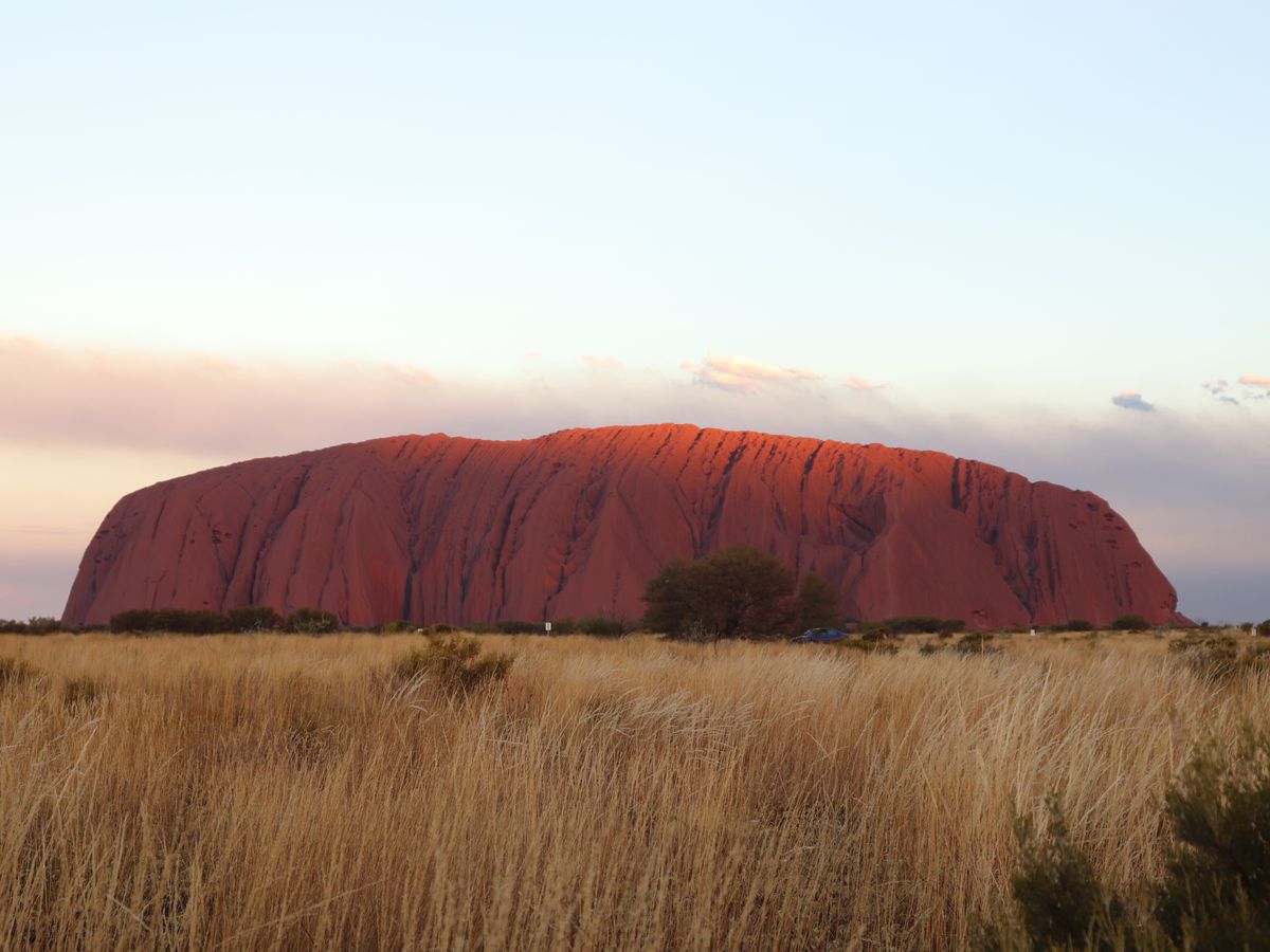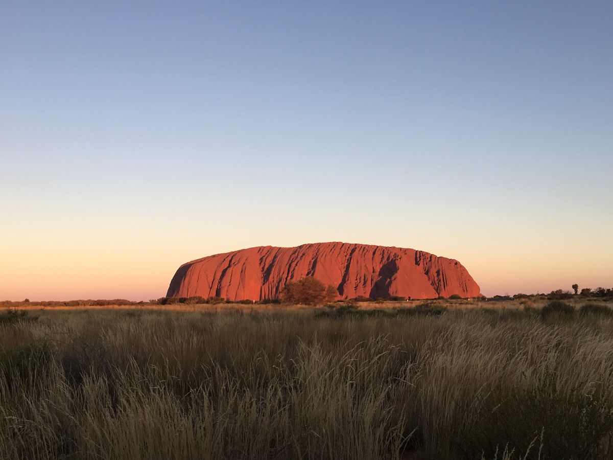残念なことに、サンセット間際に太陽に雲がかかってしまいましたが、途中まで濃いオレンジに照らされたウルルを見られたので満足です。