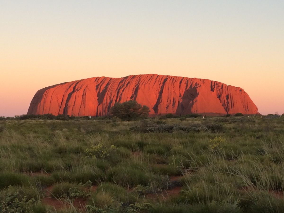 とちゅうから雨がふってきたため、きれいなサンセットとはいきませんでしたが、なんとか赤くそまったエアーズロックを見ることができました。夜の星空は残念ながら見えませんでしたが、それでも雨の中一生懸命に星座の位置関係を説明していただいたガイドさんに感動しました。いい思い出になりました。