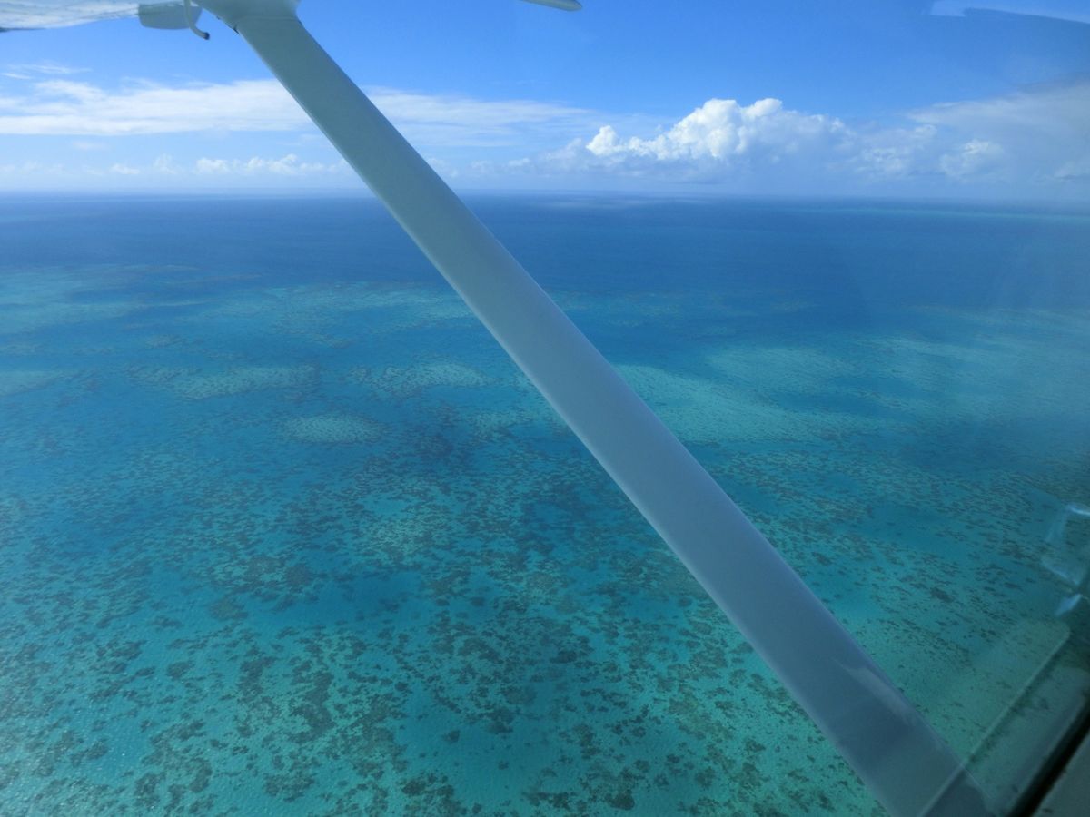 体験談の投稿いただきありがとうございました。生憎天候が優れない状態でしたが、飛行の際に晴れ間が出てきて本当に良かったですね。近年水温温暖化が原因で珊瑚礁の白化現象など、海の生態系のバランスが崩れています。おっしゃる通りオーストラリアへお越しの際は、世界最大の生命体となったグレートバリアリーフを是非訪れていただきたいと思います。また、機会がありましたら是非乗りに来てください。スタッフ一同お待ちしております!