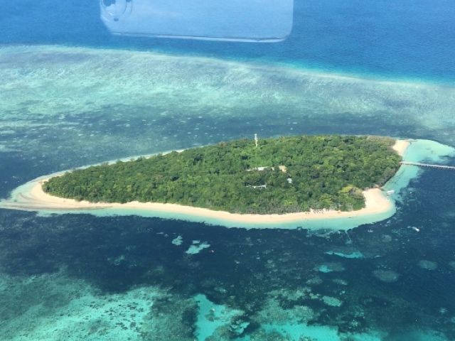 グーリン島→アーリントンリーフ(コアラリーフ)→アフターリーフ→ミコマスリーフ→プラスオフケイ→ウポルケイまで40~45分間の飛行でしたが、とくにミコマスリーフやウルポケイは手付かずの自然を満喫できます。グレートバリアリーフは絶対に上空から見るのをお勧めします。