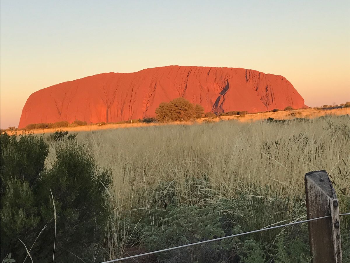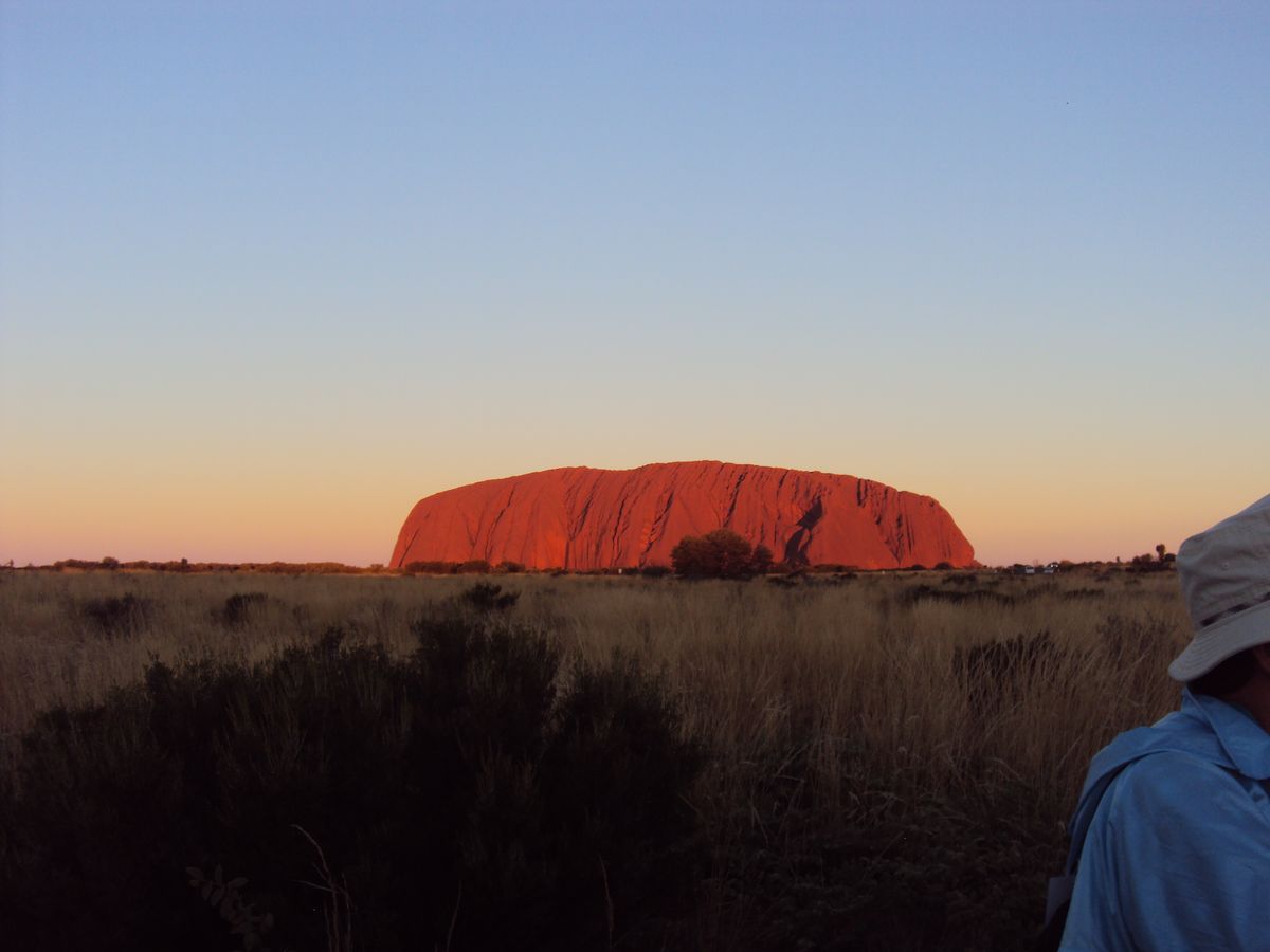 ゆうぐれに、ほろ酔いで見たエアーズロックは、赤くてとてもきれいでした。