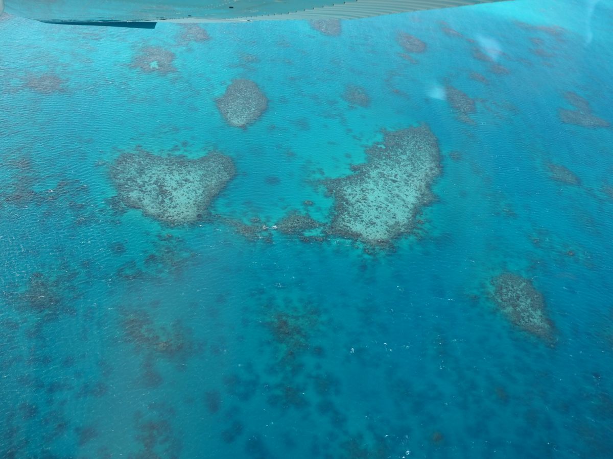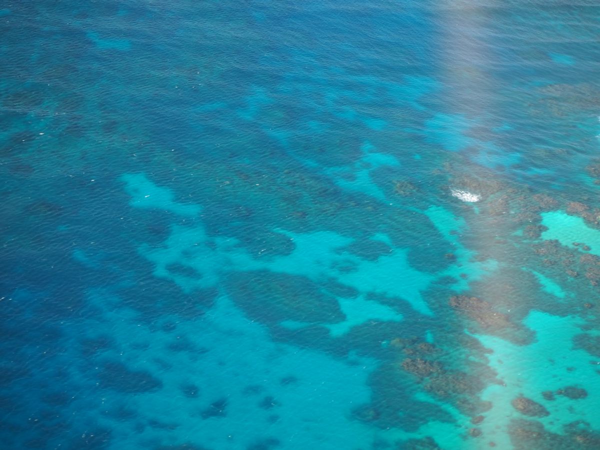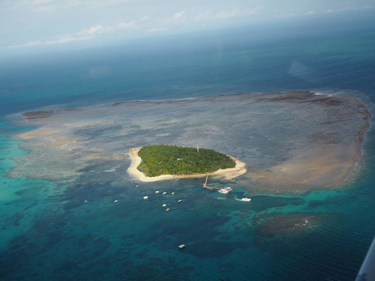 セスナでケアンズの沖合いにあるグレートバリアリーフをぐるりと周遊。グリーン島や、コアラリーフなど、上空からすごくキレイに見えます。