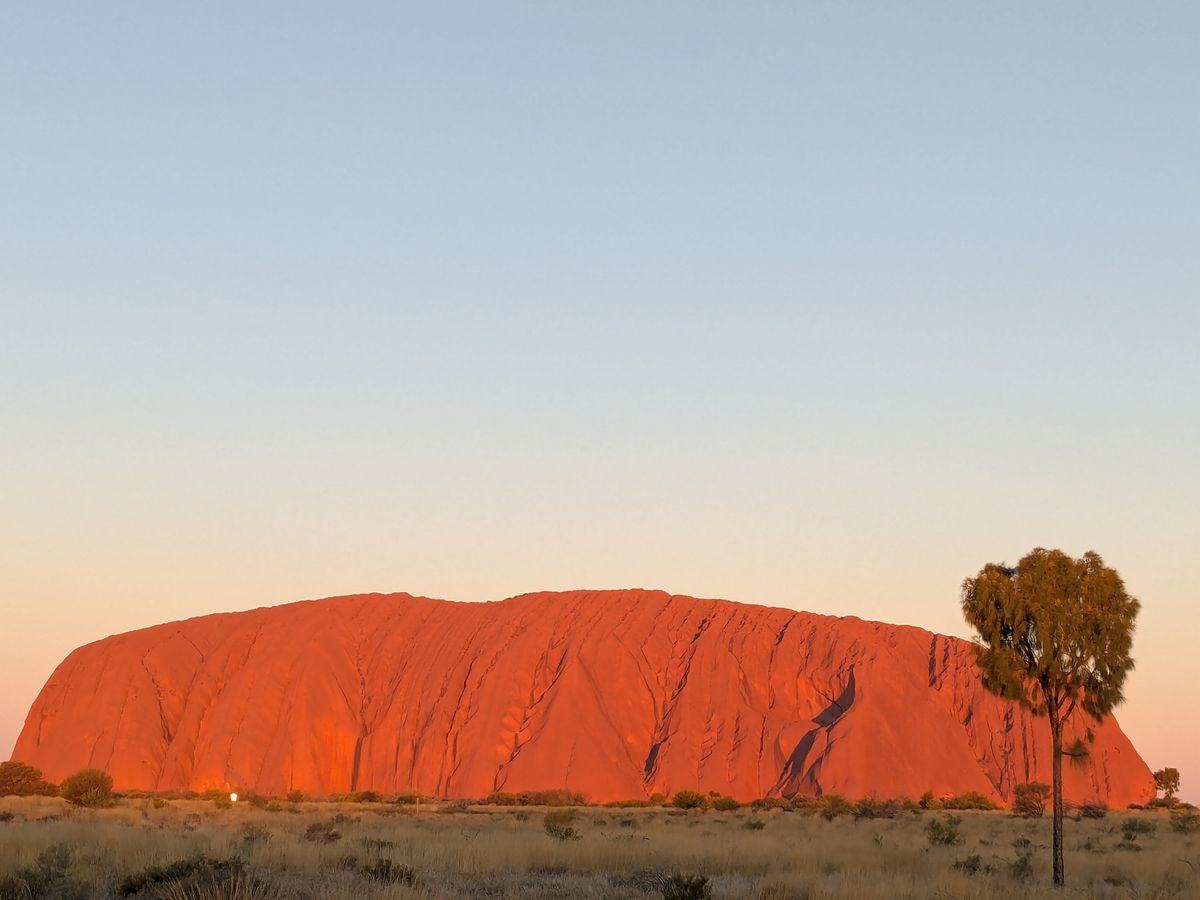見渡す限りの平原にそびえるウルルに、刻々と変わる太陽の光があたり、岩山、草原、空が赤や青のグラデーションを織りなす光景は、写真で伝えるのが難しく、現地でこそ味わえる感動だと思います。ぜひ多くの方に体験してほしい絶景です!
